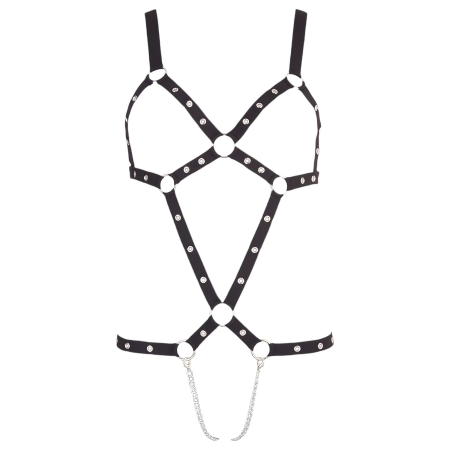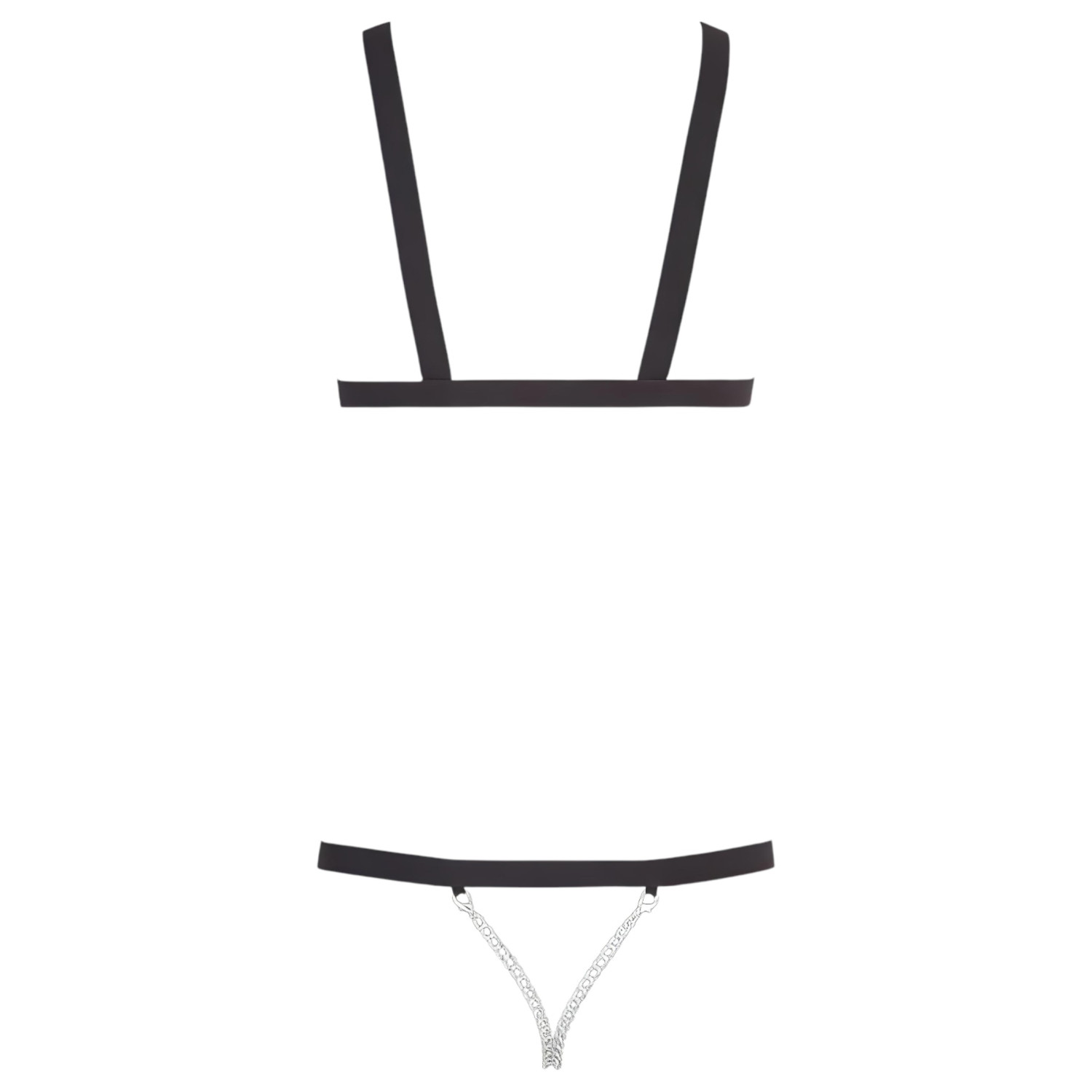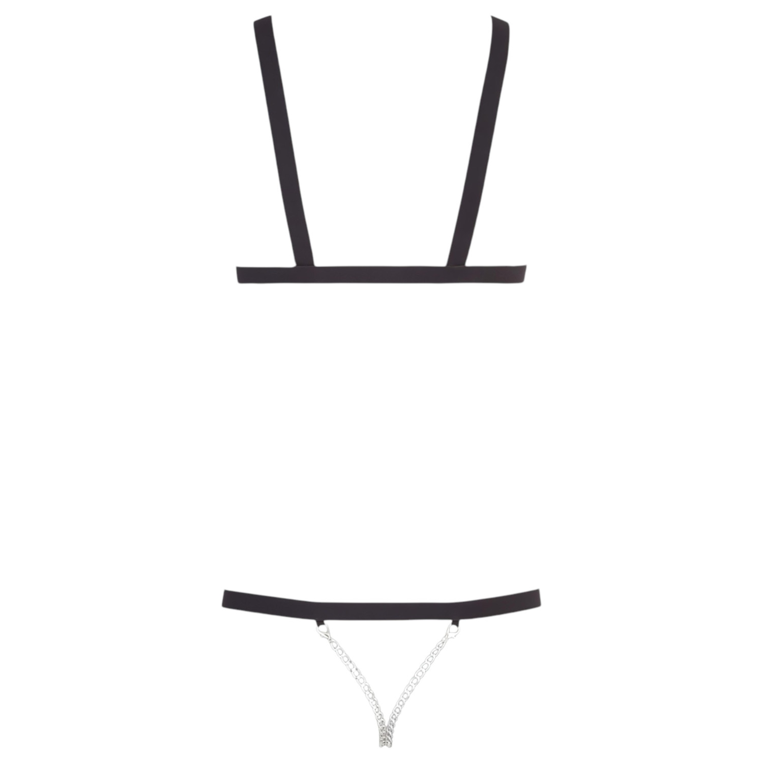Ζήσε τον ενθουσιασμό της απόλυτης «αιχμαλωσίας» με αυτό το καυτό, εντελώς ανοιχτό body! Ο συνδυασμός ελαστικών λουριών με ασημί μεταλλικούς κρίκους και τρουκς προσφέρει άγρια και τολμηρή εμφάνιση.