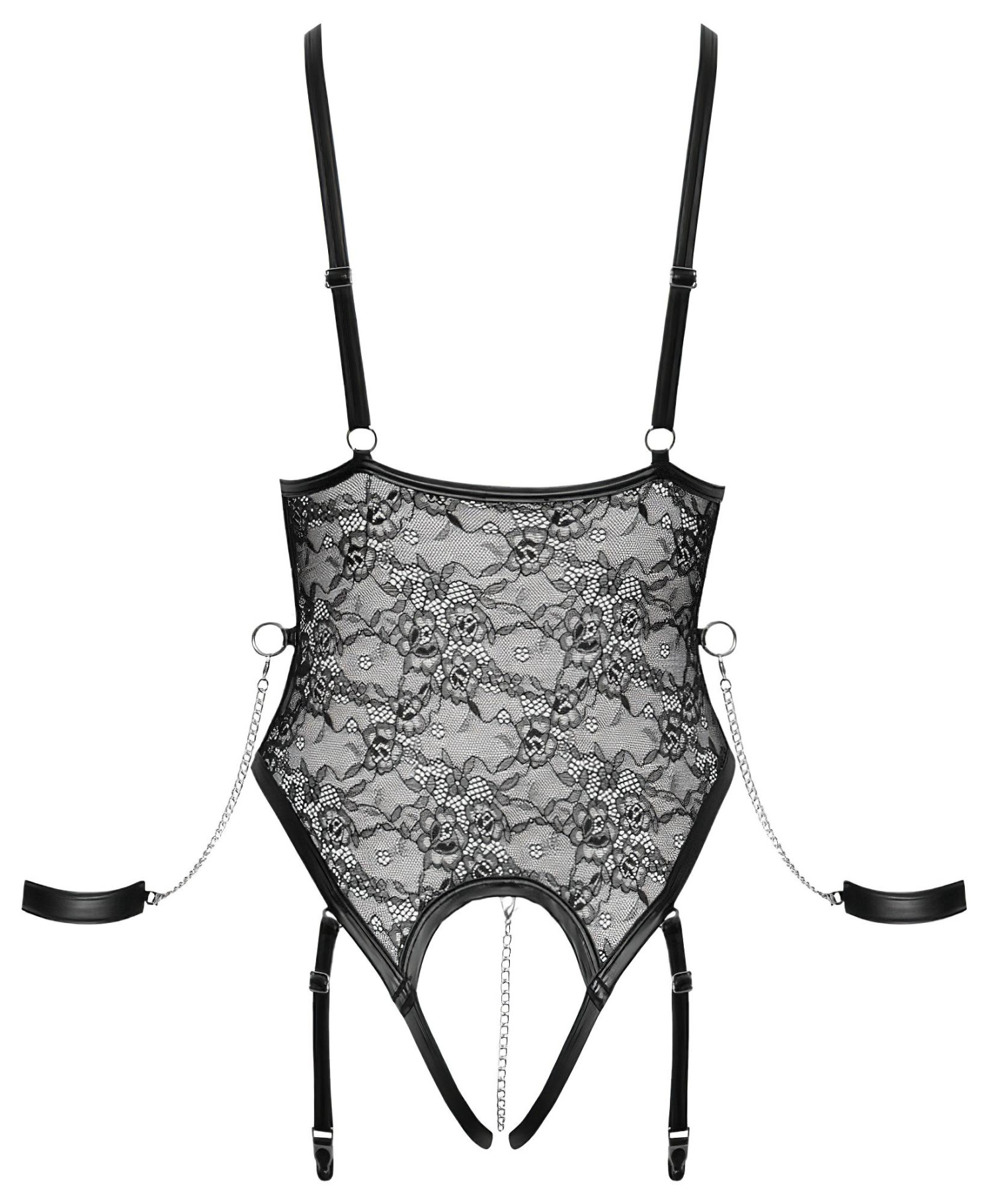 Cottelli Bondage - ανοιχτό κορμάκι με χειροπέδες (μαύρο)