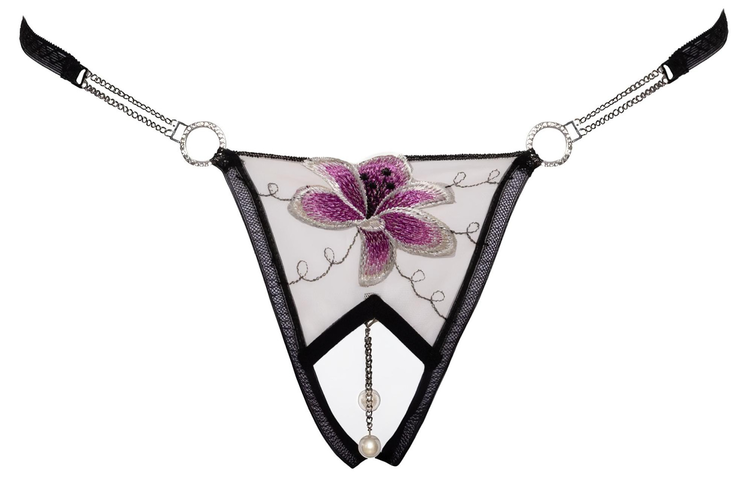 Cottelli - πολυτελές κεντημένο στρινγκ κρίνος (μαύρο-λευκό)