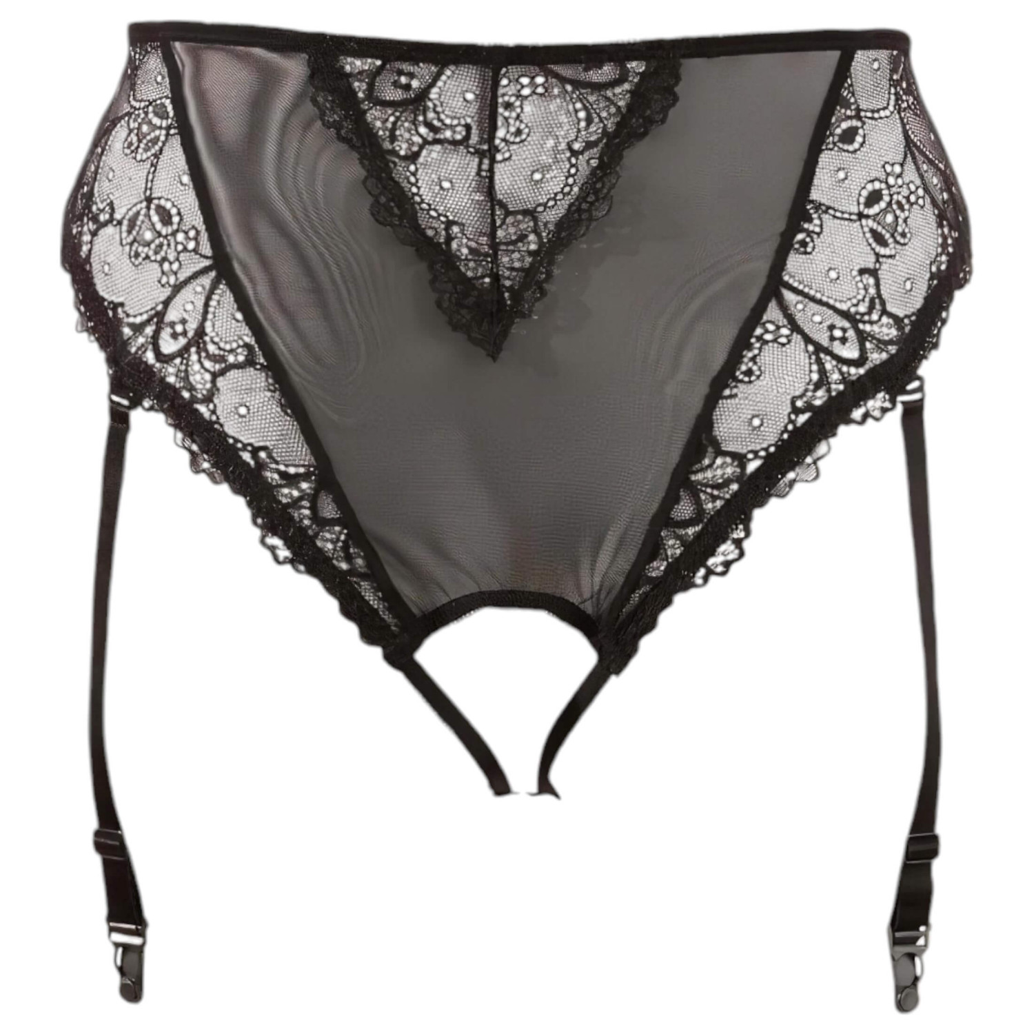 Cottelli Plus Size - δαντελωτό σλιπ με ζαρτιέρες (μαύρο)