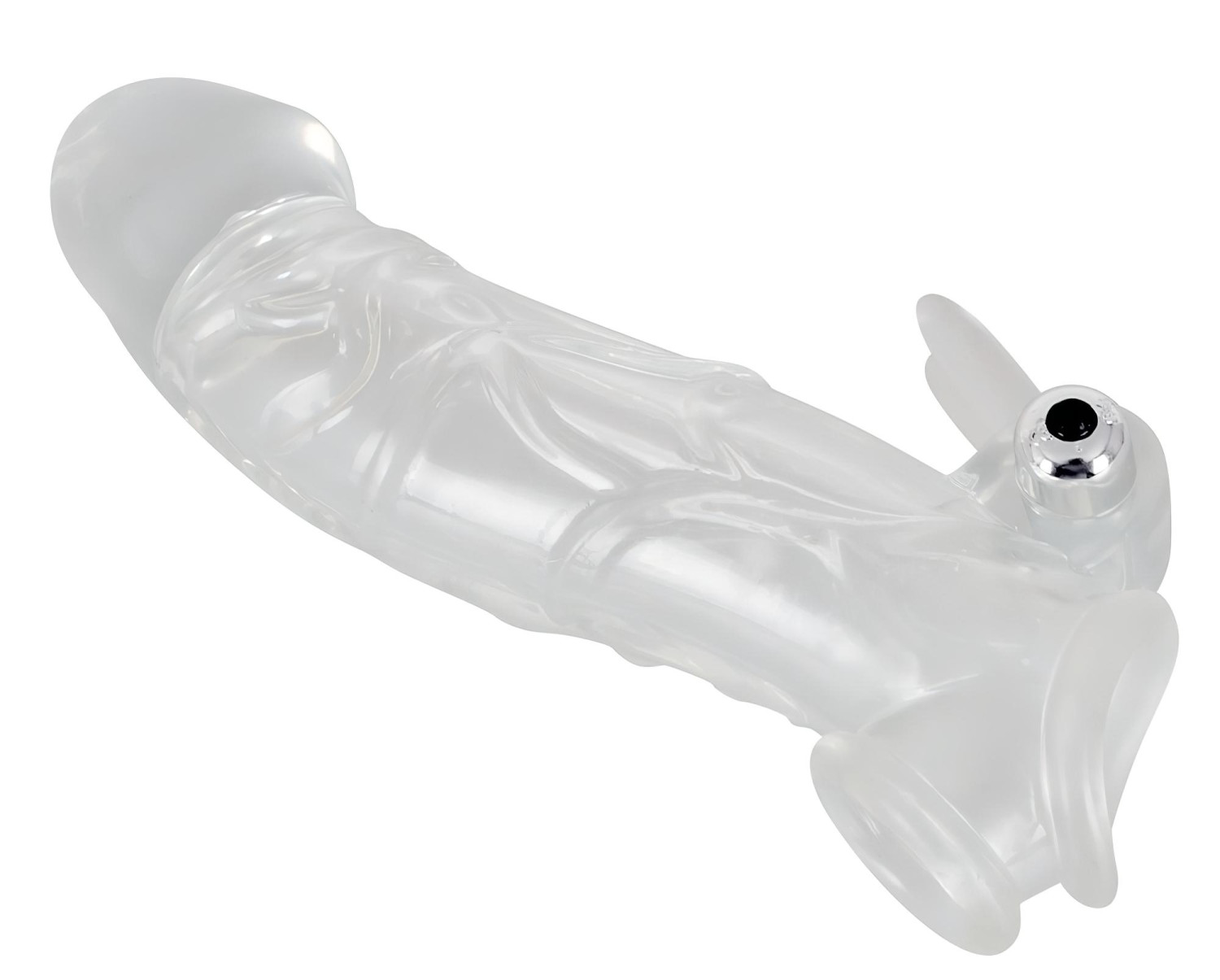 Crystal Skin περιτύλιγμα πέους - 5 εκ. πιο μακρύ πέος και δόνηση για διπλή απόλαυση!