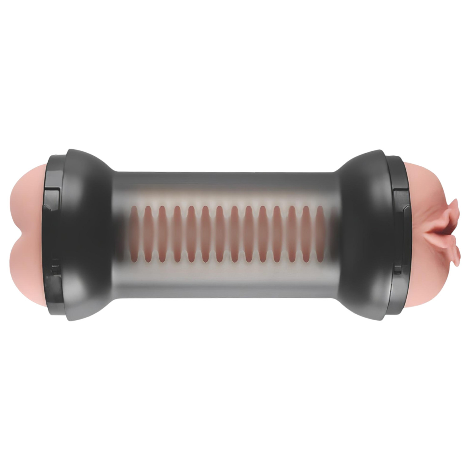 Αυτός ο αρσενικός μασέρ 2 σε 1 προσφέρει ευχαρίστηση με δύο διαφορετικά ανοίγματα: το ένα προσομοιώνει τον κόλπο και το άλλο τον πρωκτό, επιτρέποντάς σας να εναλλάσσετε την εμπειρία ανάλογα με τη διάθεσή σας. Η εσωτερική ραβδωτή, διεγερτική υφή προσφέρει έντονη ευχαρίστηση και βοηθά στην επίτευξη ενός βαθιού, ικανοποιητικού οργασμού. Το ευέλικτο, φιλικό προς το δέρμα υλικό TPE προσφέρει αίσθηση δέρματος, και χάρη στον πρακτικό σχεδιασμό του, καθαρίζεται εύκολα - μια τέλεια επιλογή για καθημερινή χρήση ή προπόνηση.