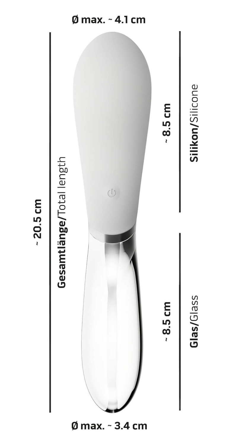• Και τα δύο άκρα χρησιμοποιούνται - το ένα άκρο από βελούδινη σιλικόνη, το άλλο από συμπαγές, ποιοτικό βοριοπυριτικό γυαλί