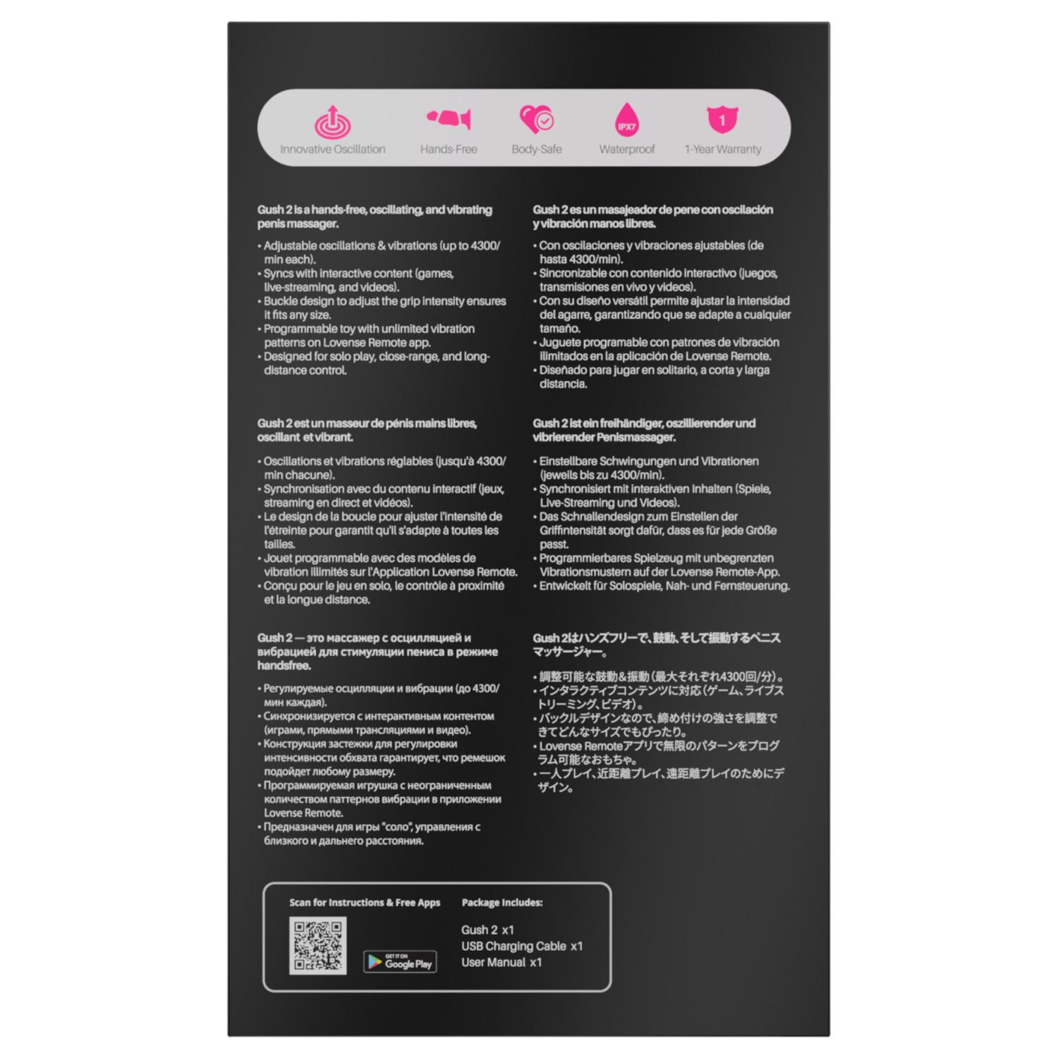 • Ευέλικτος και ρυθμιζόμενος σχεδιασμός: Το Gush 2 προσαρμόζεται εύκολα σε διαφορετικά μεγέθη και προτιμήσεις, ιδανικό για hands-free χρήση ή manual για πιο έντονη διέγερση.