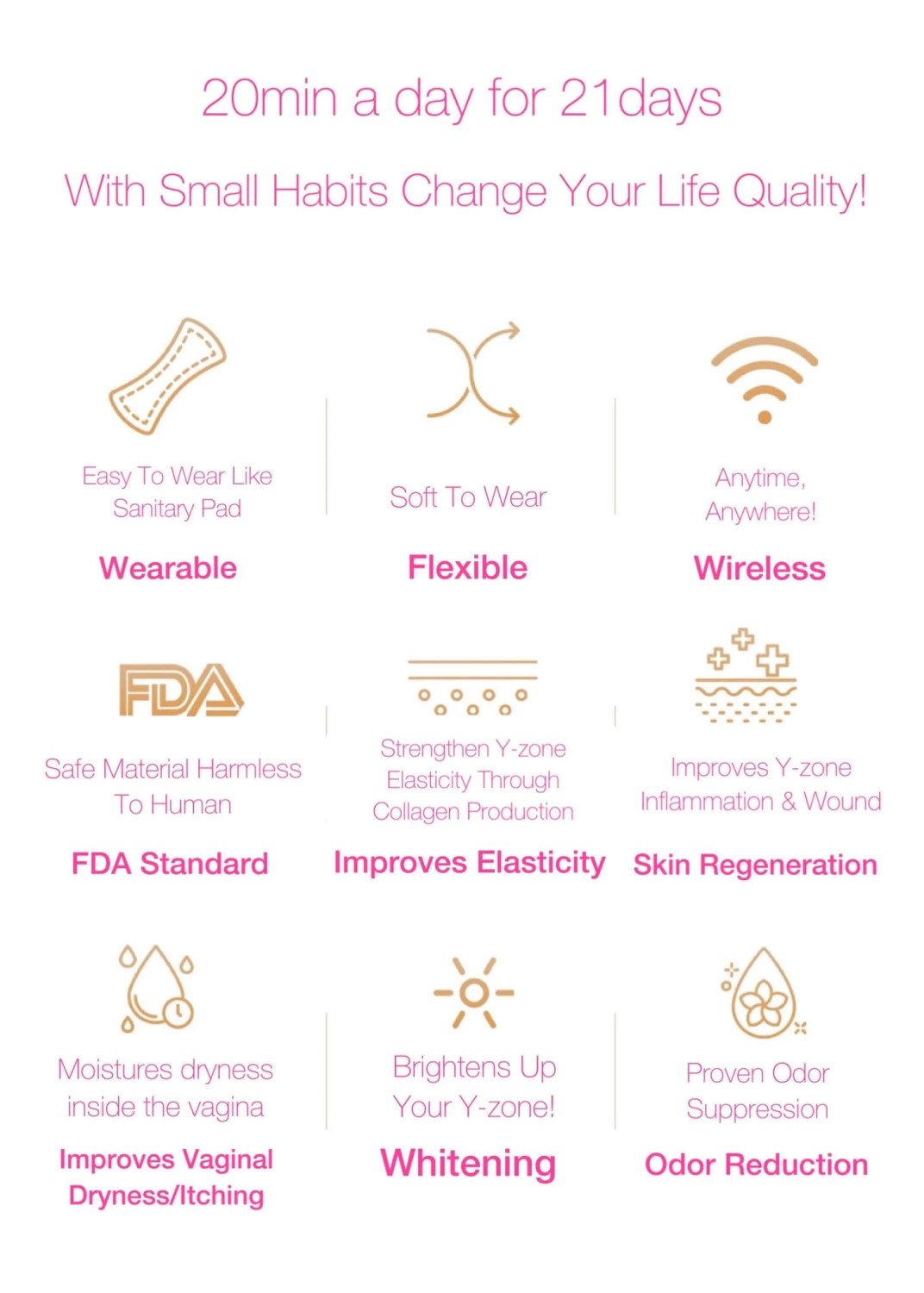Το Luminiel Y zone patch δουλεύει με LED φως για να ενεργοποιήσει την επιδερμίδα στα εξωτερικά γεννητικά όργανα.