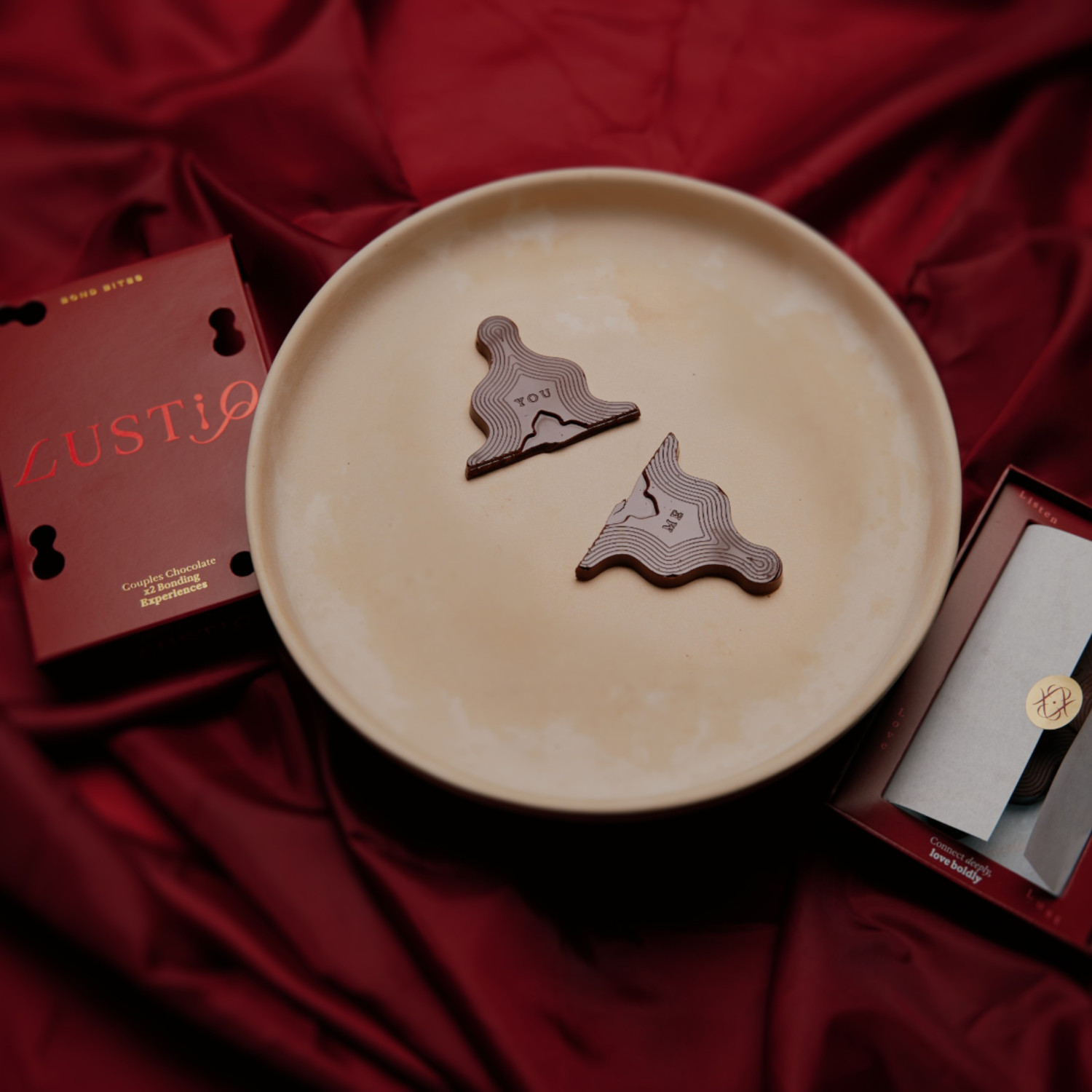 Η Lustiq Bond Bites είναι μία premium 70% μαύρη σοκολάτα, εμπλουτισμένη με προσεκτικά επιλεγμένα φυσικά εκχυλίσματα προσαρμογόνων. Αυτός ο ειδικός συνδυασμός υποστηρίζει την συναισθηματική και φυσική οικειότητα, βοηθά στη μείωση του άγχους και παρέχει ενέργεια και ζωτικότητα. Συνοδευόμενη από μια εφαρμογή, δεν αποκτάτε μόνο ένα γευστικό γλύκισμα, αλλά μια διαδραστική εμπειρία που σας φέρνει πιο κοντά με τον σύντροφό σας.