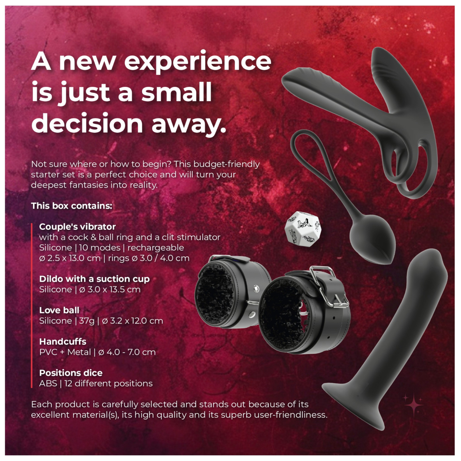 • 5-σε-1 σετ σεξ – αποκτήστε όλα όσα χρειάζεστε σε ένα κουτί για συναρπαστικές κοινές βραδιές.