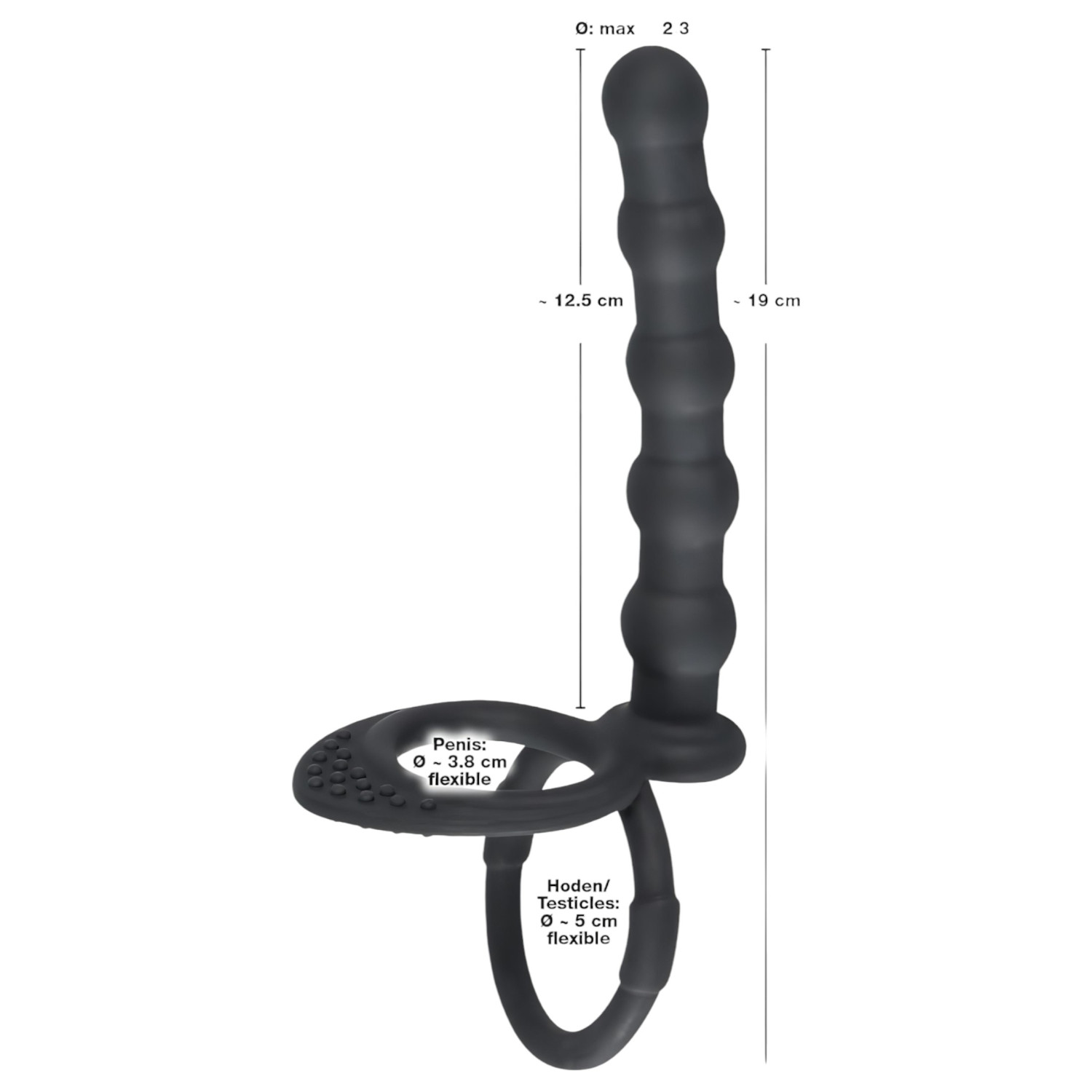 Ανδρικό δονητικό παιχνίδι με δαχτυλίδι για όρχεις και πέος, που ενισχύει τη στύση και προσφέρει μοναδική αίσθηση πληρότητας στον πρωκτό! Ο κόλπος γίνεται πιο σφιχτός κατά τη διάρκεια του σεξ, ενώ οι μικρές μπίλιες που βρίσκονται στο δαχτυλίδι διεγείρουν την κλειτορίδα.