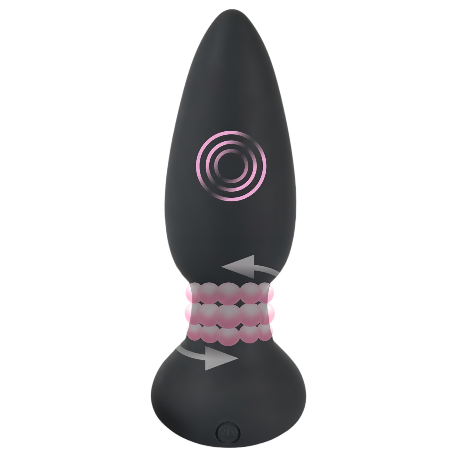 Black Velvet - περιστροφικός πρωκτικός δονητής με μαργαριτάρια (μαύρο)