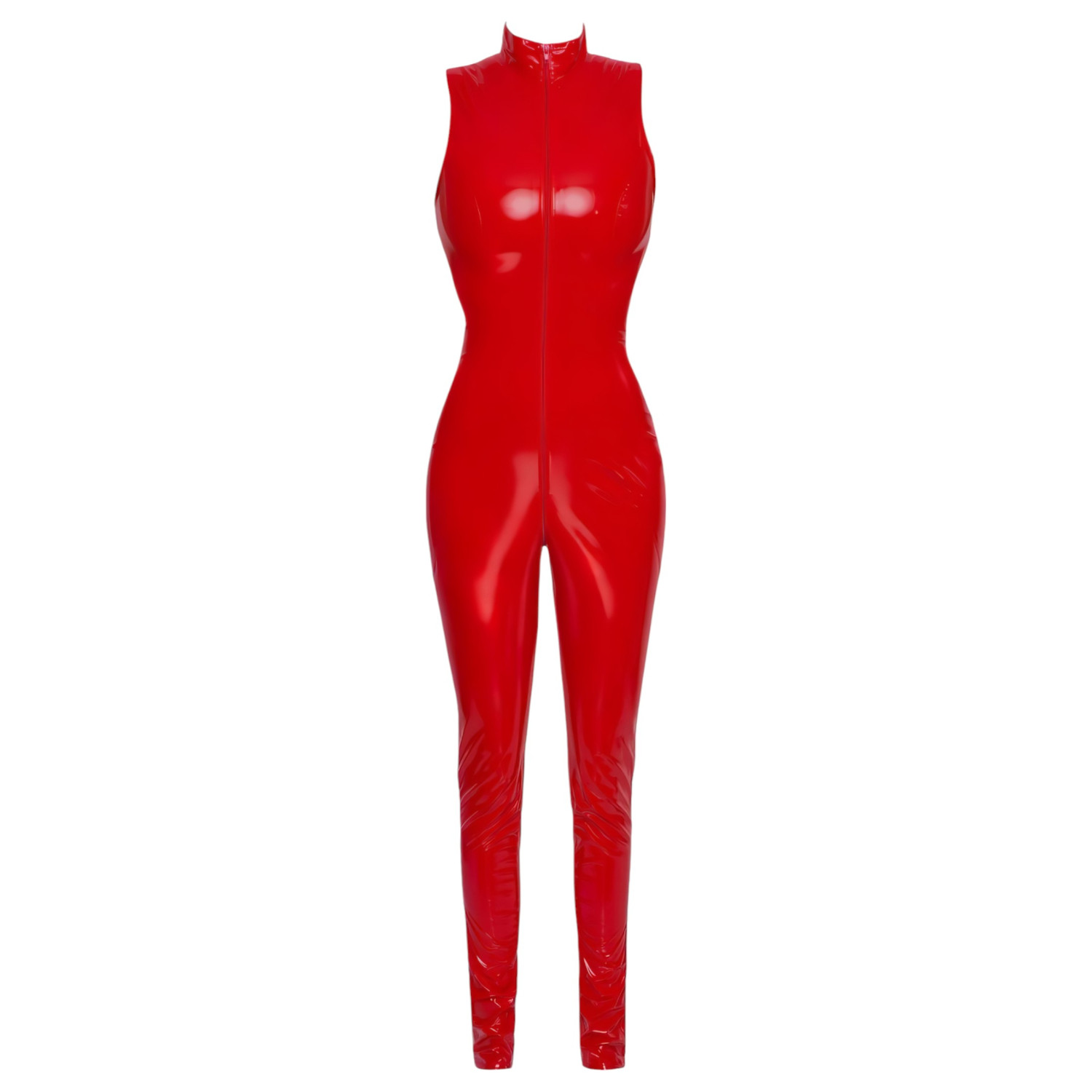 Αυτό το εκρηκτικά κόκκινο, αμάνικο ολόσωμο είναι ένα εντυπωσιακό ρούχο που συνδυάζει το τολμηρό στυλ με απόλυτη άνεση.