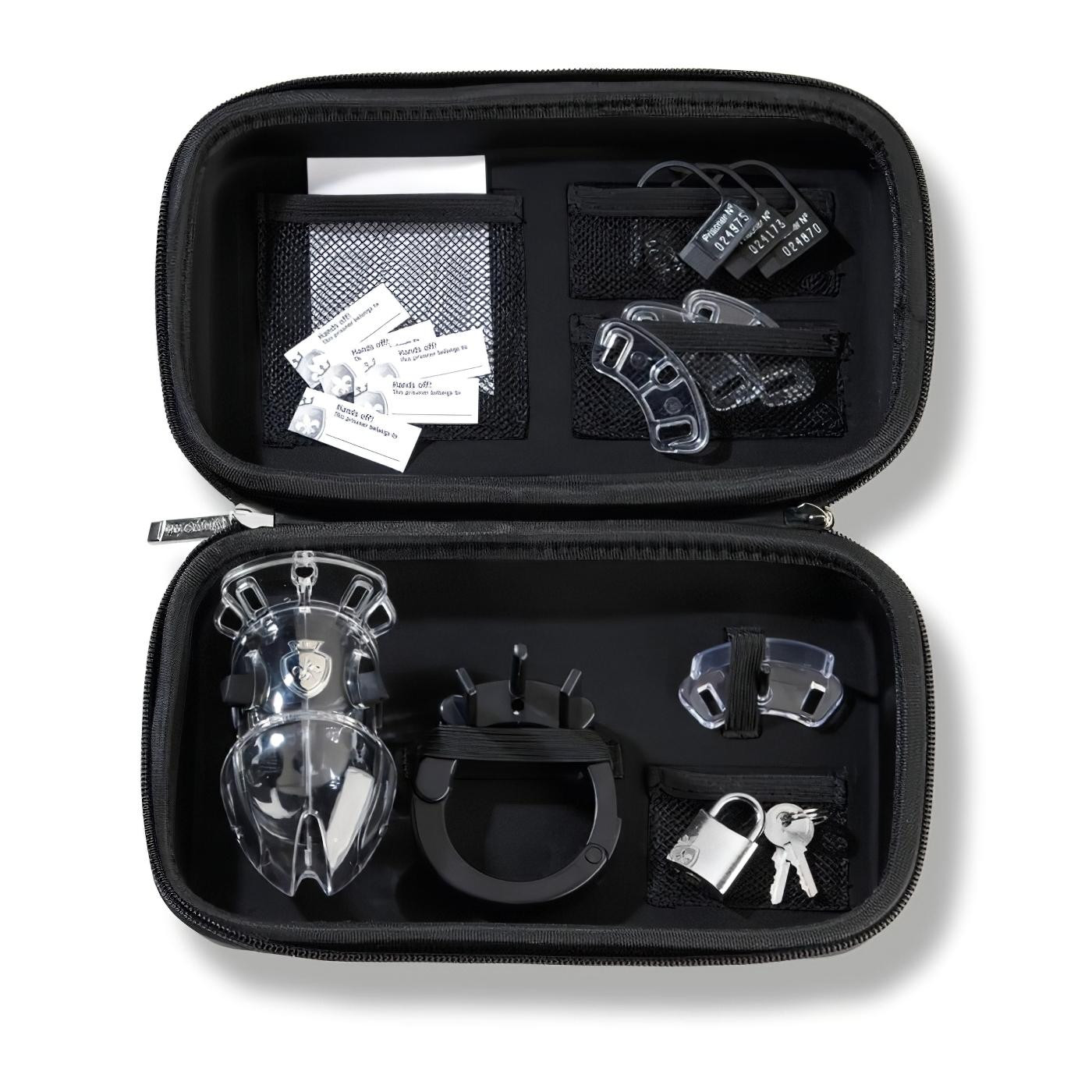 • 1 διαφανές, καλουπωμένο κλουβί πέους, με αφαιρούμενη επένδυση σιλικόνης