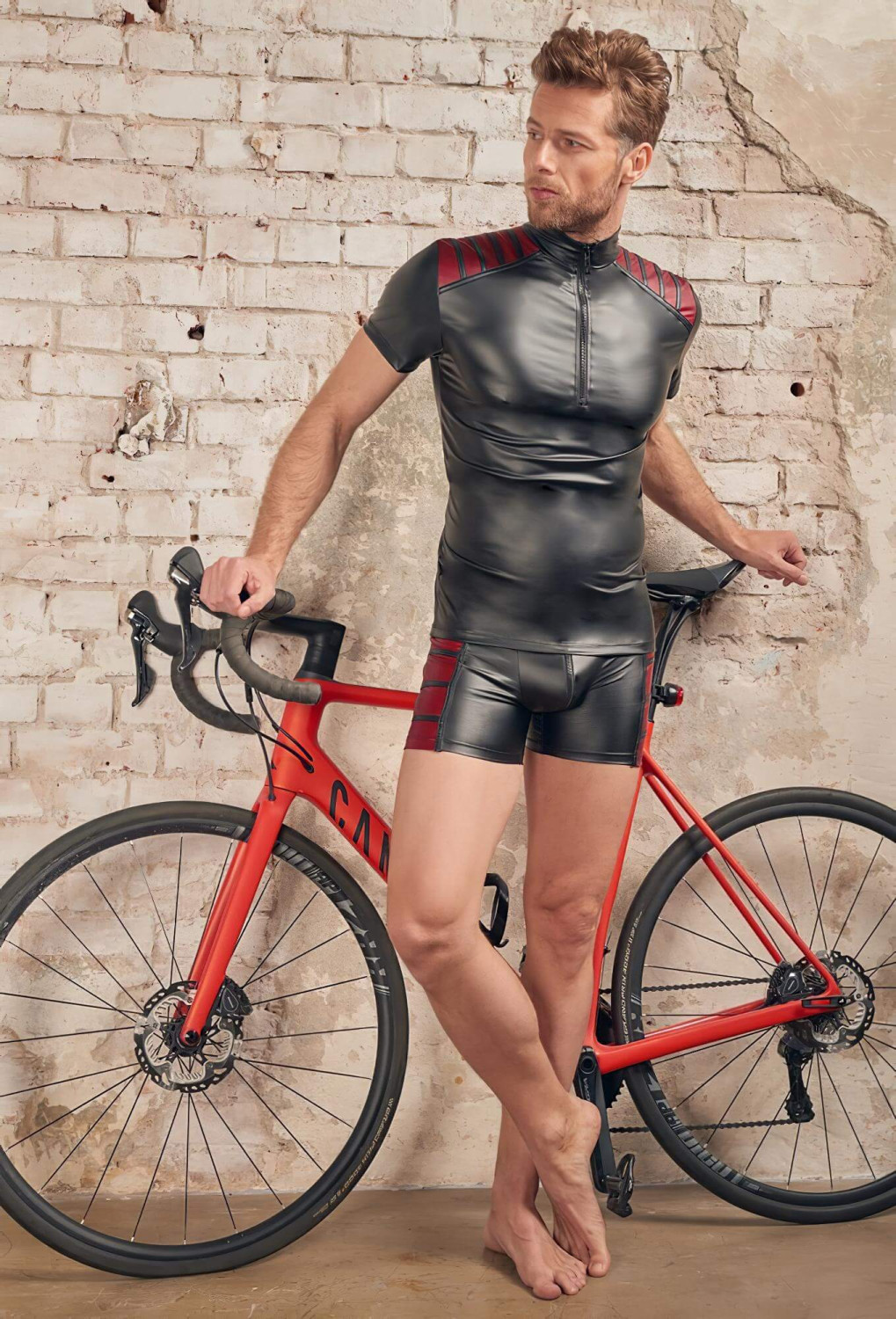 Εντυπωσιακό, γυαλιστερό ανδρικό τοπ με μοναδικές μπορντό ρίγες στους ώμους.