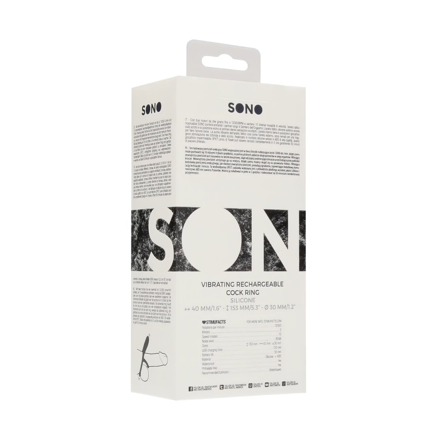• 1 SONO επαναφορτιζόμενο δονούμενο δαχτυλίδι πέους