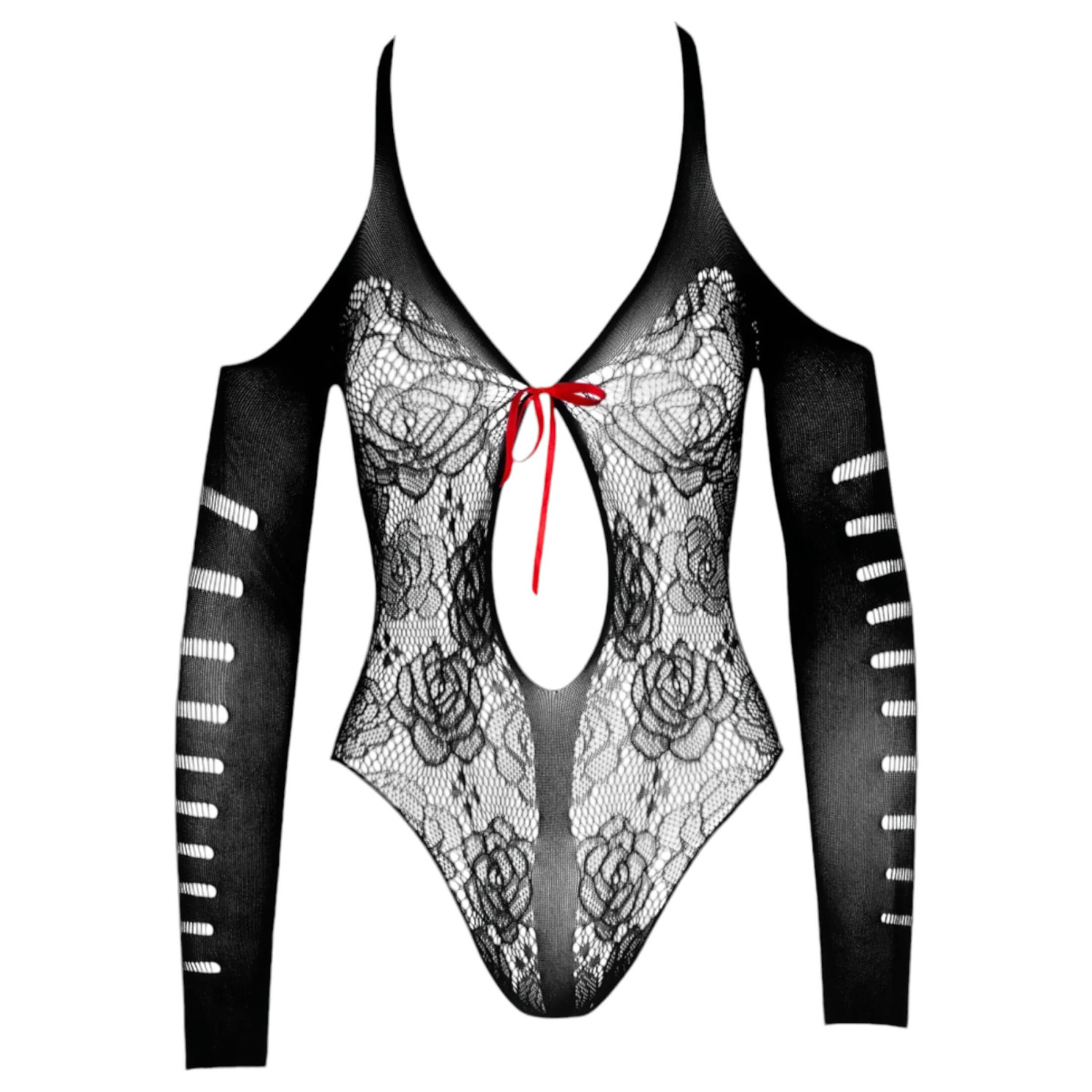 • 1 κομμάτι διχτυωτό body με μακριά μανίκια, ανοιχτό στο επίμαχο σημείο και φιόγκο