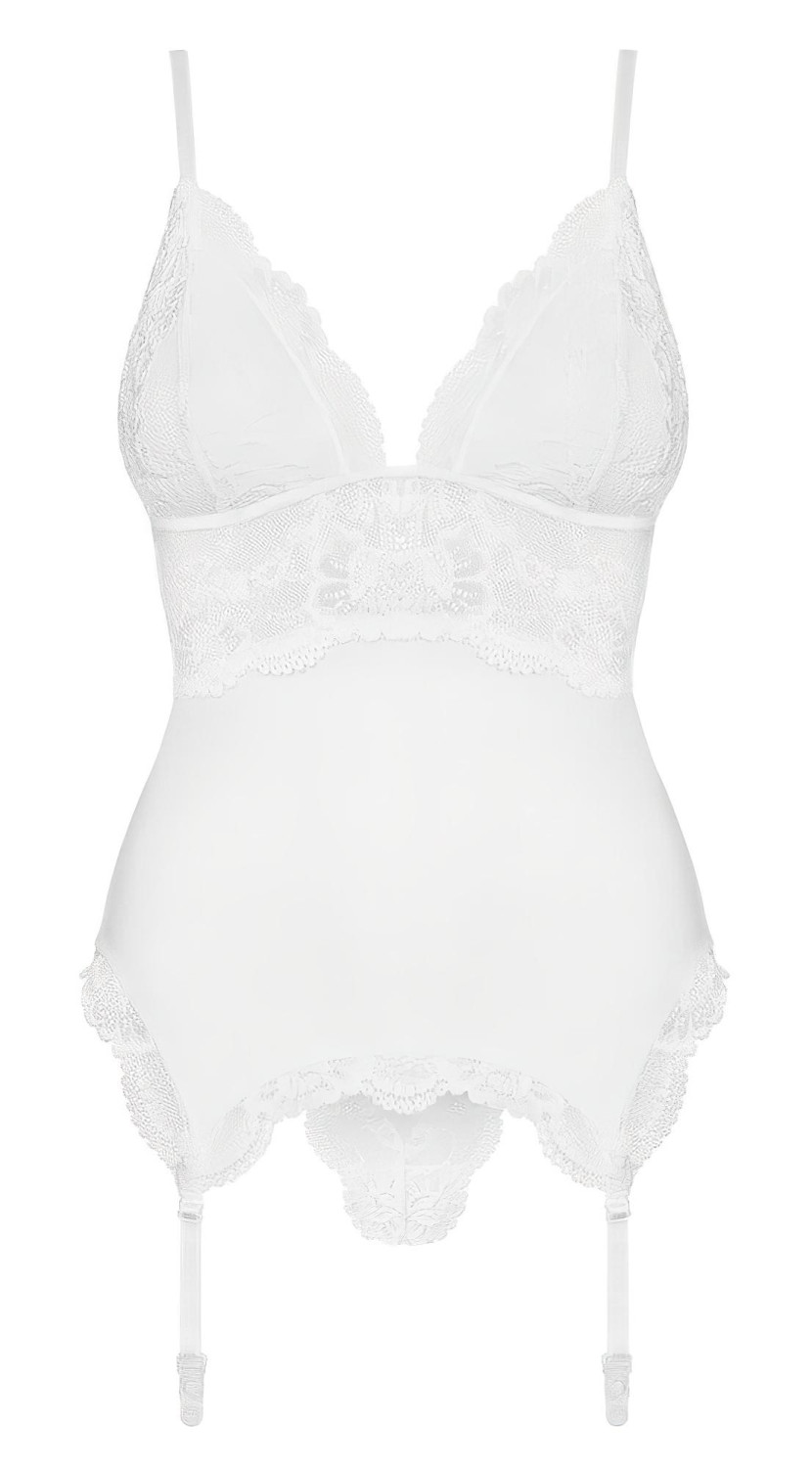 Obsessive 810-COR-2 - Δαντελένιο σετ με ζαρτιέρες (λευκό)