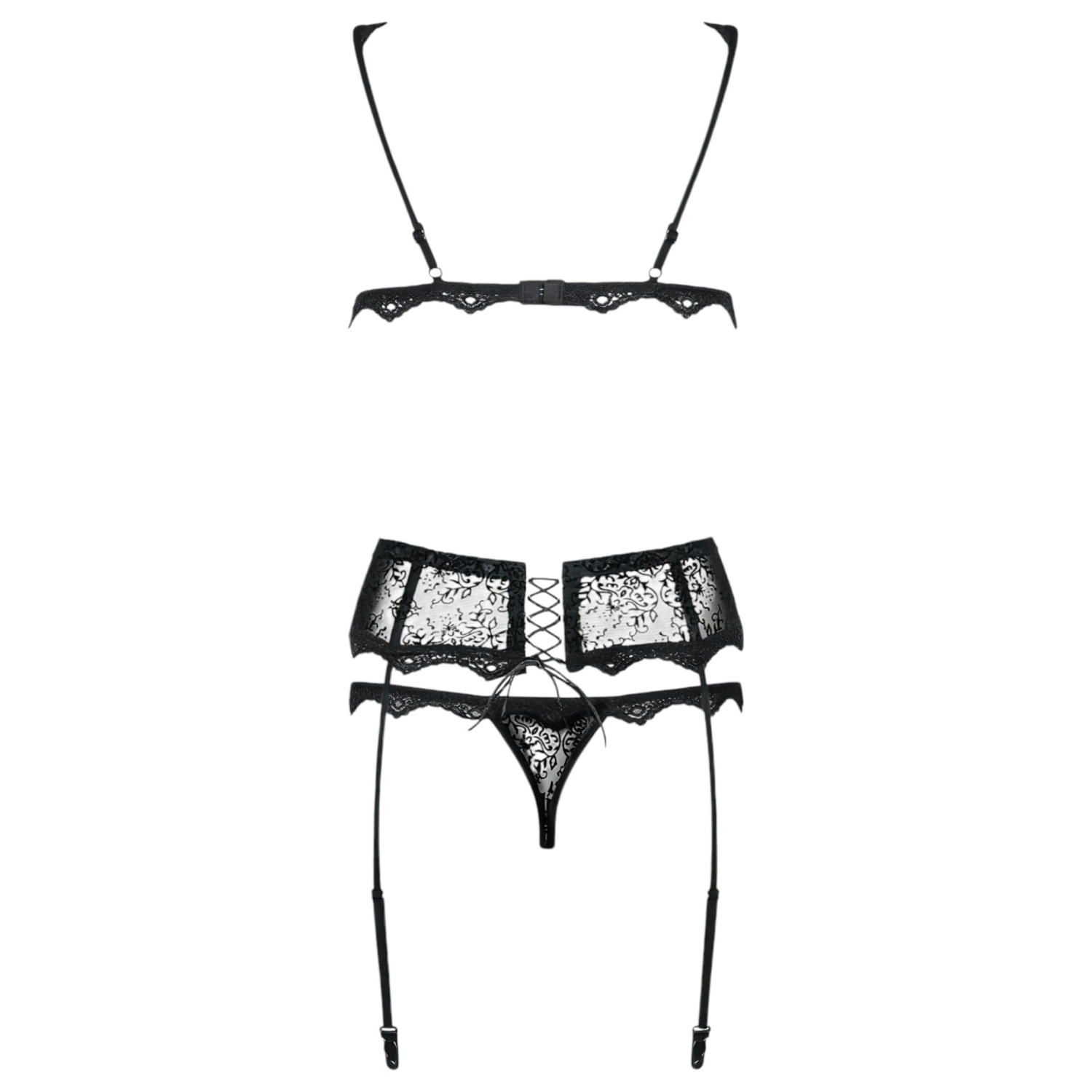 Πλούσιο, διάφανο τριών τεμαχίων εσώρουχο σετ με μικρά κεντήματα, ιδανικό για γυναίκες που λατρεύουν το εκλεπτυσμένο sexy στυλ!