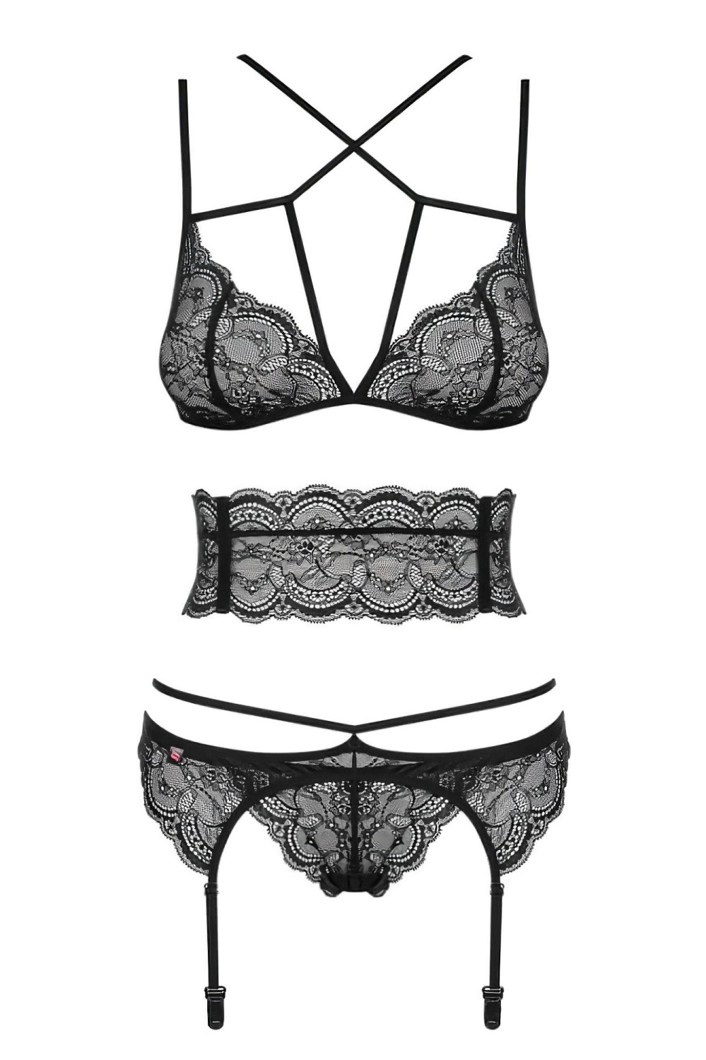 Obsessive Frivolla - πικάντικο δαντελένιο σετ εσωρούχων (μαύρο)