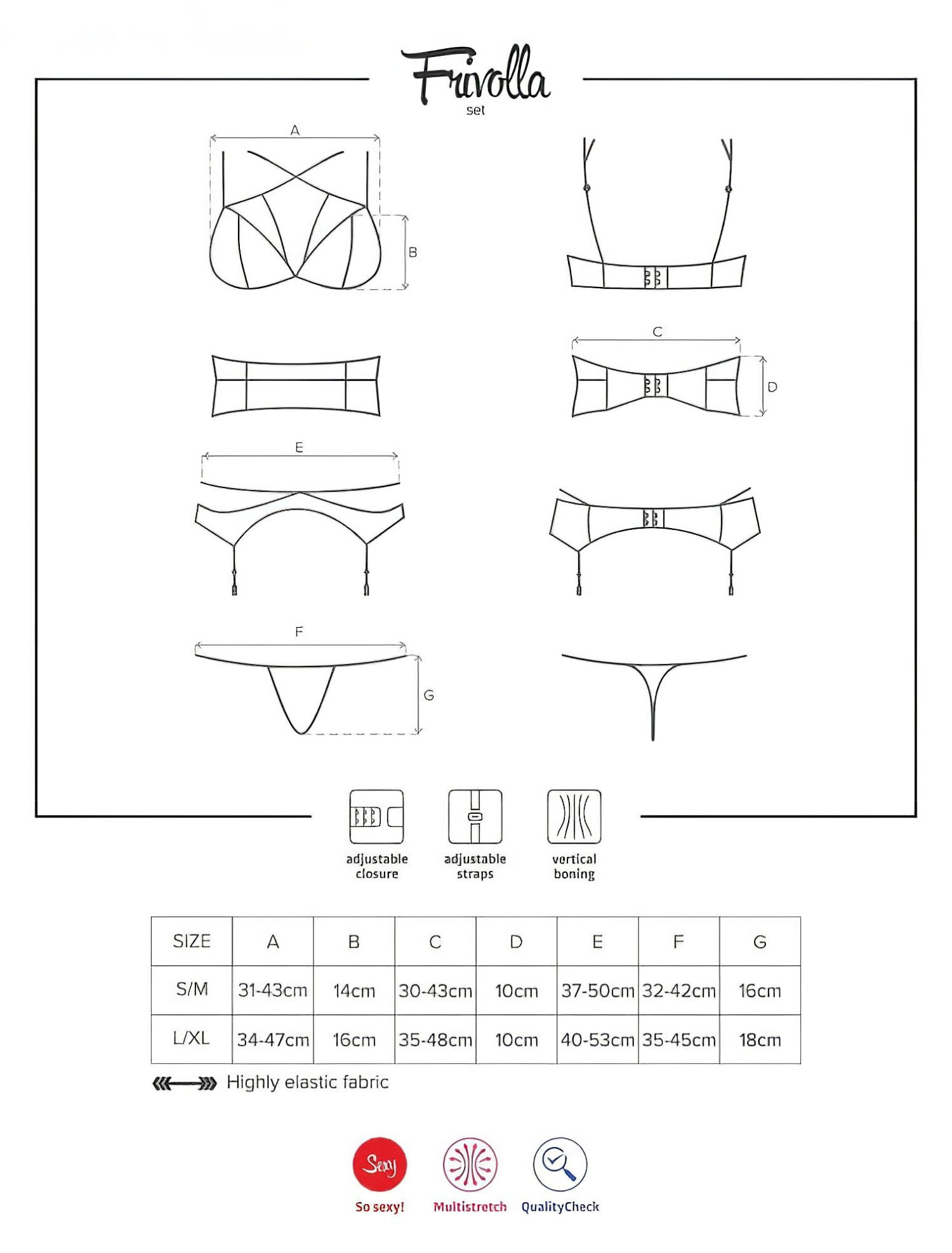 • Πολλαπλές επιλογές - τα κομμάτια του σετ συνδυάζονται όπως θες για να δημιουργήσεις διάφορες σέξι εμφανίσεις