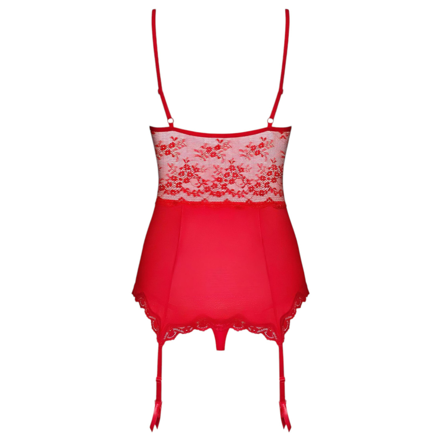 Obsessive Lovica - δαντελένιο τοπ ζαρτιέρας και στρινγκ (κόκκινο) - L/XL