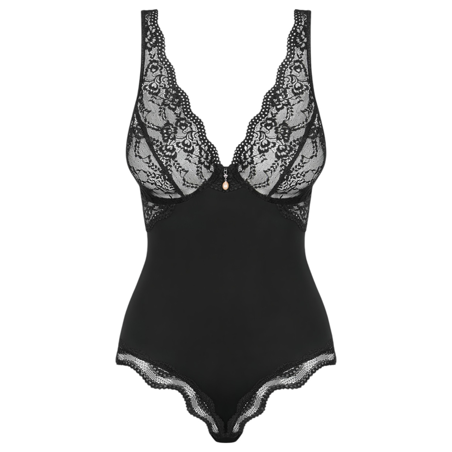 Ένα εντυπωσιακό κορμάκι διακοσμημένο με μοναδικά λουλουδάτα μοτίβα και λαμπερή, σατινέ πινελιά με πέρλα - για μια ακαταμάχητη εμφάνιση!