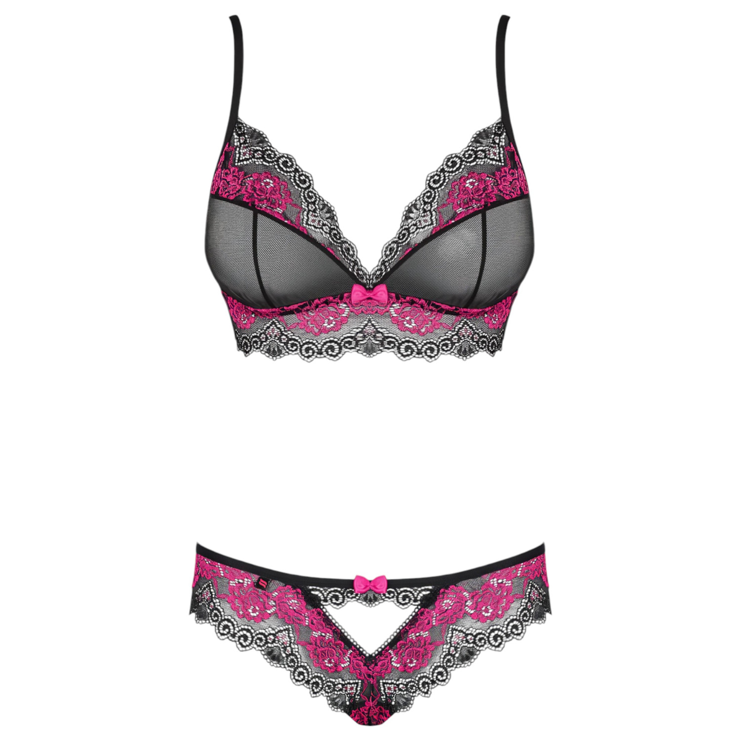 Obsessive Tulia - δαντελένιο σετ εσωρούχων (μαύρο-ροζ)