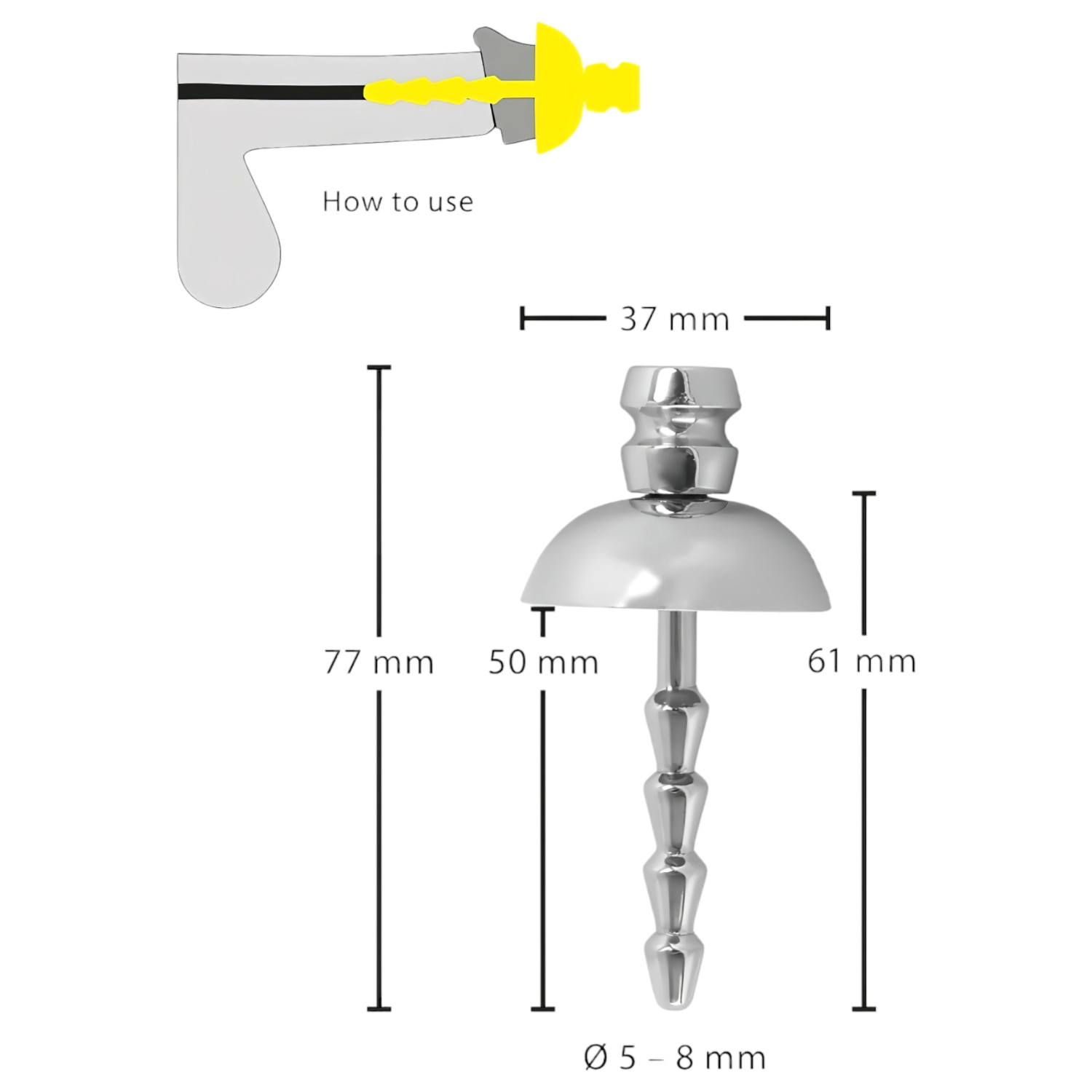 Όχι μια συνηθισμένη αίσθηση απόλαυσης - μόνο για όσους ξέρουν!Υψηλής ποιότητας, στιβαρό διαστολέα ουρήθρας από ατσάλι, με στρογγυλεμένες εσοχές στην επιφάνεια, μικρή "ομπρέλα" και κουμπί για εύκολη αφαίρεση.