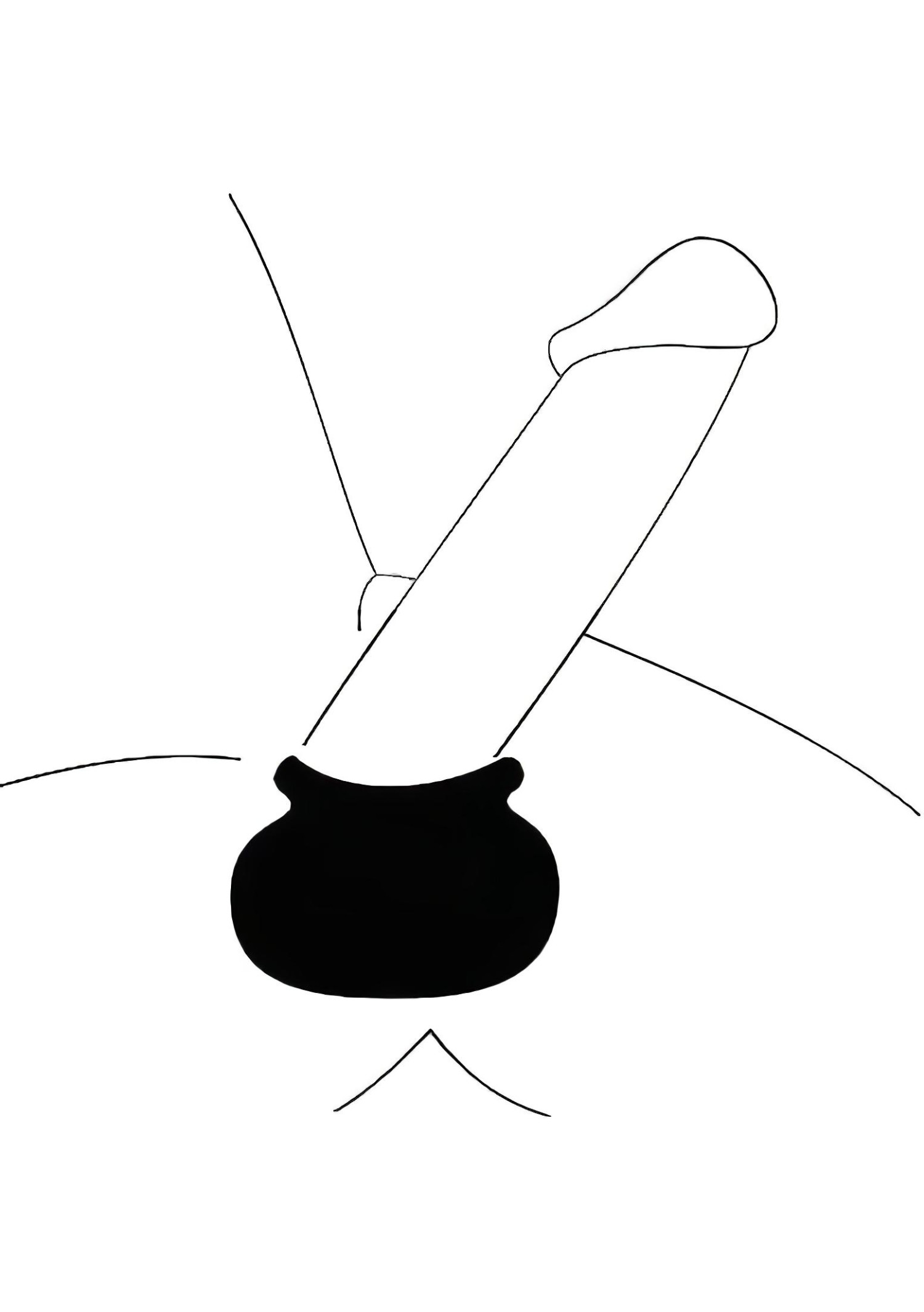 Άνοιξε την είσοδο - για παράδειγμα με δυο δάχτυλα ή πιάνοντάς το από το περίγραμμα - και πέρασέ το απαλά γύρω από το όσχεο ώστε να εφαρμόσει σταθερά. Το σχήμα του εξασφαλίζει ελαφριά πίεση και πολύ ευχάριστη αίσθηση, τραβώντας τους όρχεις προς τα κάτω.