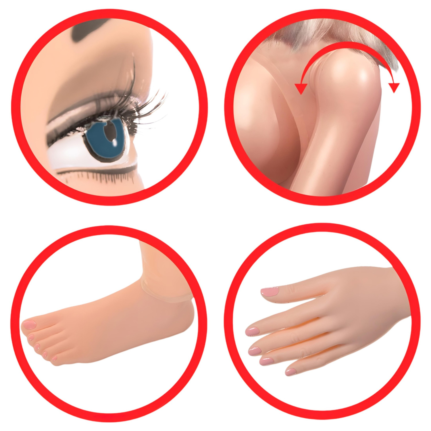 • Ρεαλιστικό μέγεθος, στρογγυλό και γεμάτο στήθος, περιστρεφόμενα χέρια