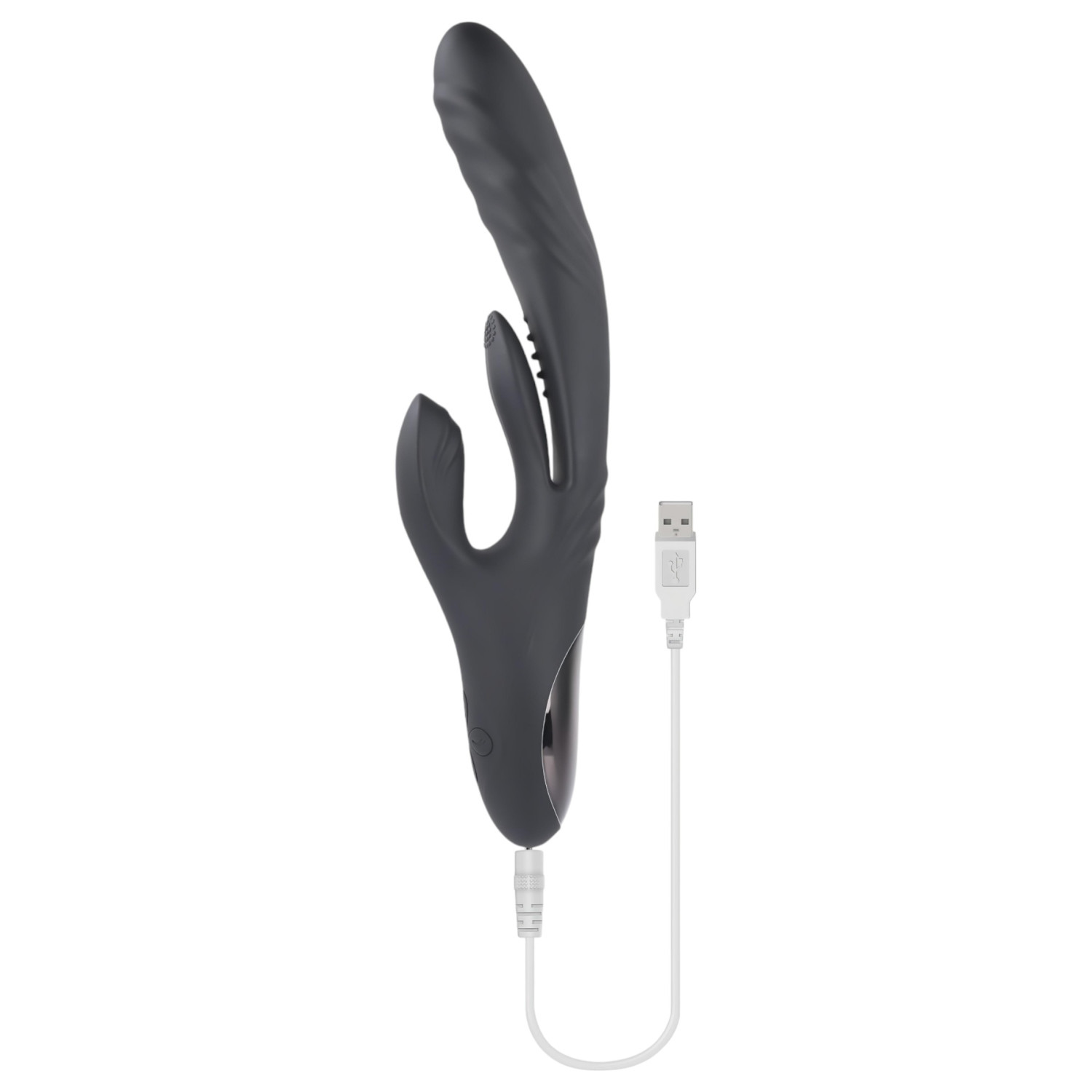 Playboy Rapid Rabbit - επαναφορτιζόμενος δονητής με κλειτοριδικό βραχίονα (μαύρο)