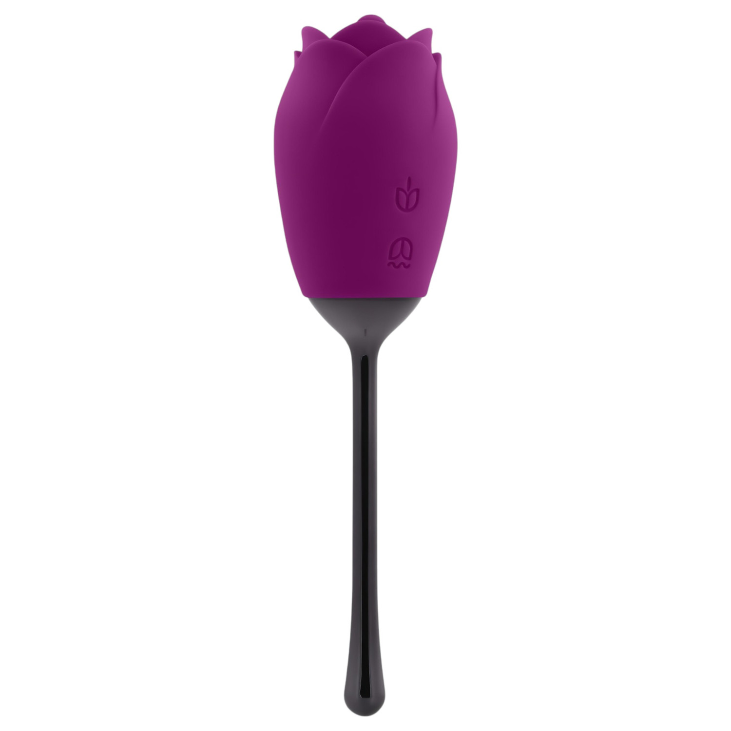 Αυτό το γοητευτικό, σε σχήμα τριαντάφυλλου ερωτικό παιχνίδι προσφέρει διπλή απόλαυση: κλειτοριδική διέγερση που θυμίζει κίνηση γλώσσας και ταυτόχρονα δονητικό κοτσάνι, οπότε μπορείς να το προσαρμόσεις στη διάθεσή σου κάθε φορά.