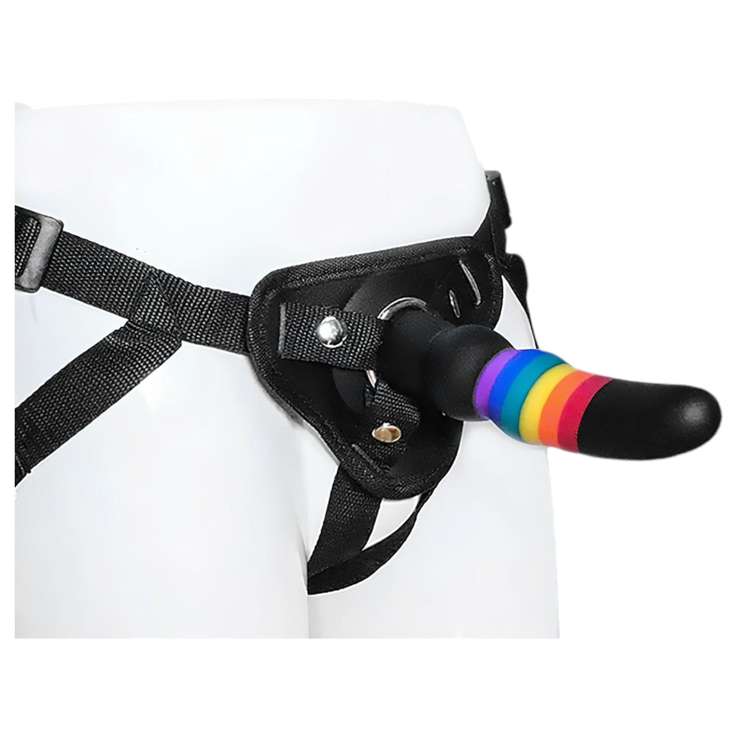 Ζώνη με δονητή για strap-on παιχνίδι, σε χρώματα ουράνιου τόξου, με ποιοτική ολλανδική κατασκευή!