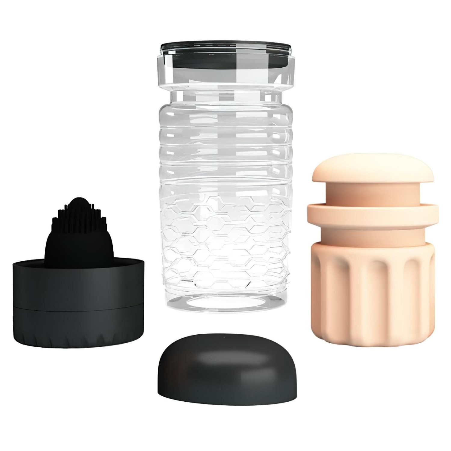 • Ισχυρός δονητής στο εσωτερικό - η κορυφή του πέους απολαμβάνει κινήσεις πάνω-κάτω και άγγιγμα από απαλά εξογκώματα