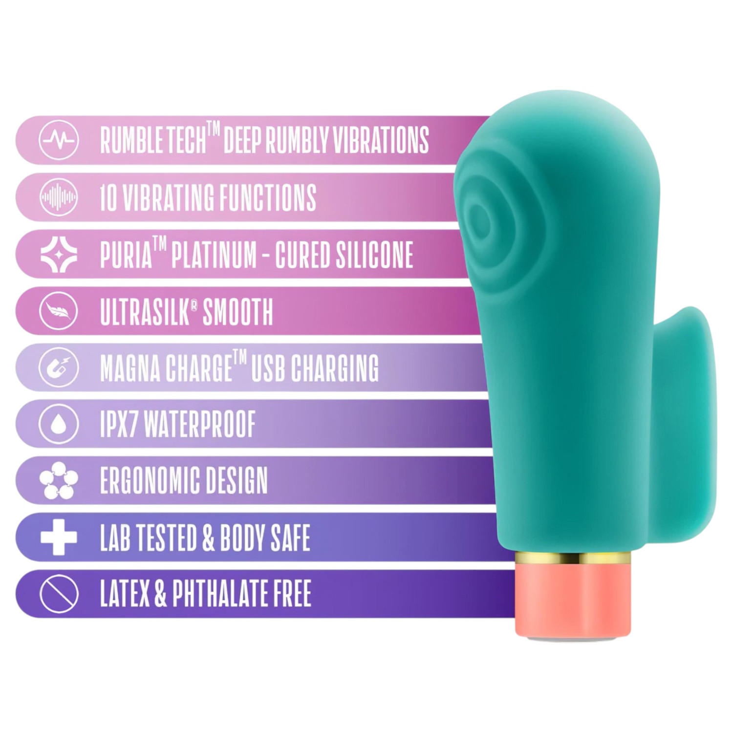 Το Blush Aria – δονητής δακτύλου είναι η τέλεια επιλογή για όσους επιθυμούν μια έντονη, αλλά μεταξένια απαλή εμπειρία. Χάρη στην τεχνολογία Rumble Tech™, προσφέρει βαθιές, ηχηρές δονήσεις που επαναπροσδιορίζουν την έννοια της διέγερσης. Ιδανικό για προσωπική ευχαρίστηση και παιχνίδι ζευγαριού, οπουδήποτε στο σώμα!