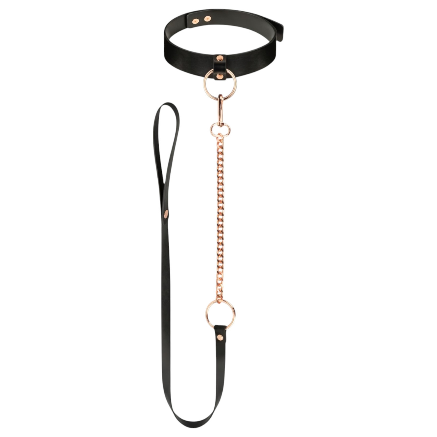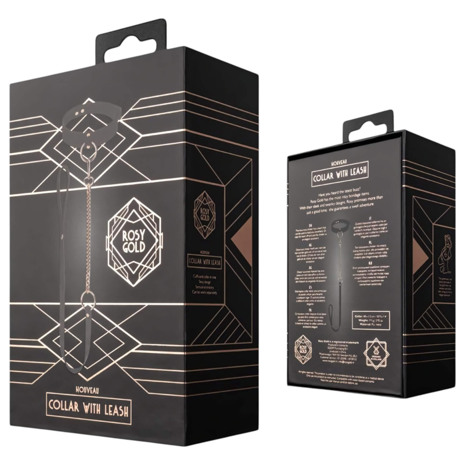 Rosy Gold - κολάρο και λουρί (μαύρο-ρόδινο χρυσό)