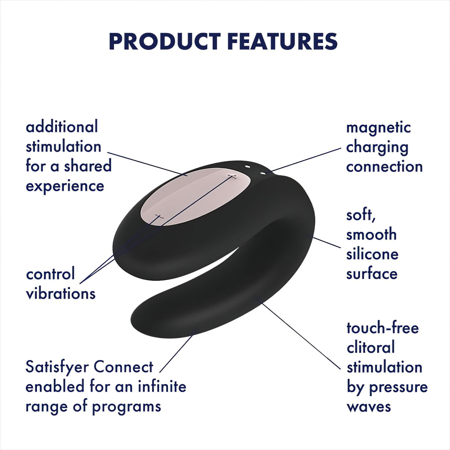 Satisfyer Double Joy - έξυπνος αδιάβροχος διπλός δονητής (μαύρο)