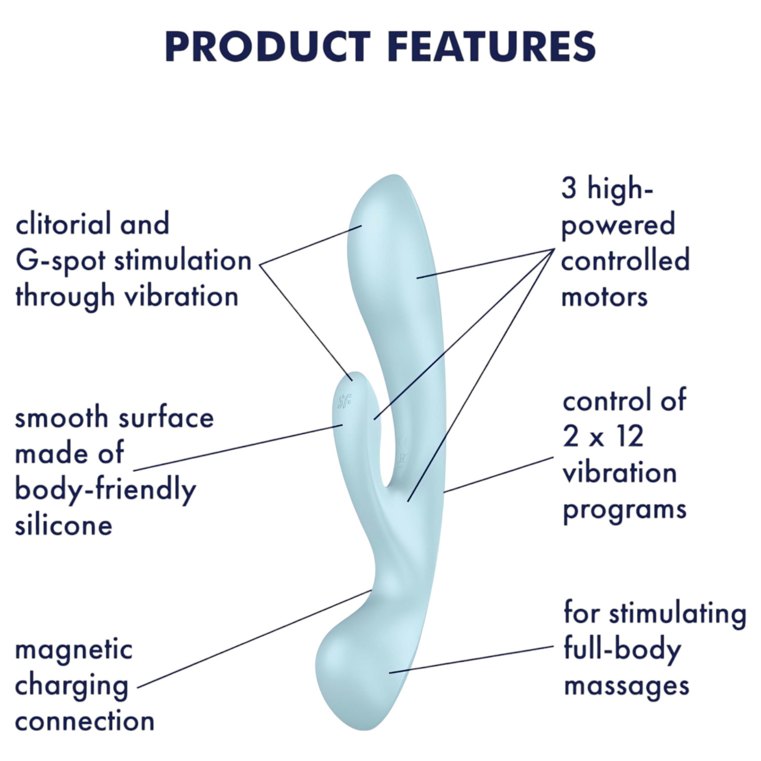 Satisfyer Triple Oh - επαναφορτιζόμενος δονητής με κλειτοριδική ράβδο (μπλε)