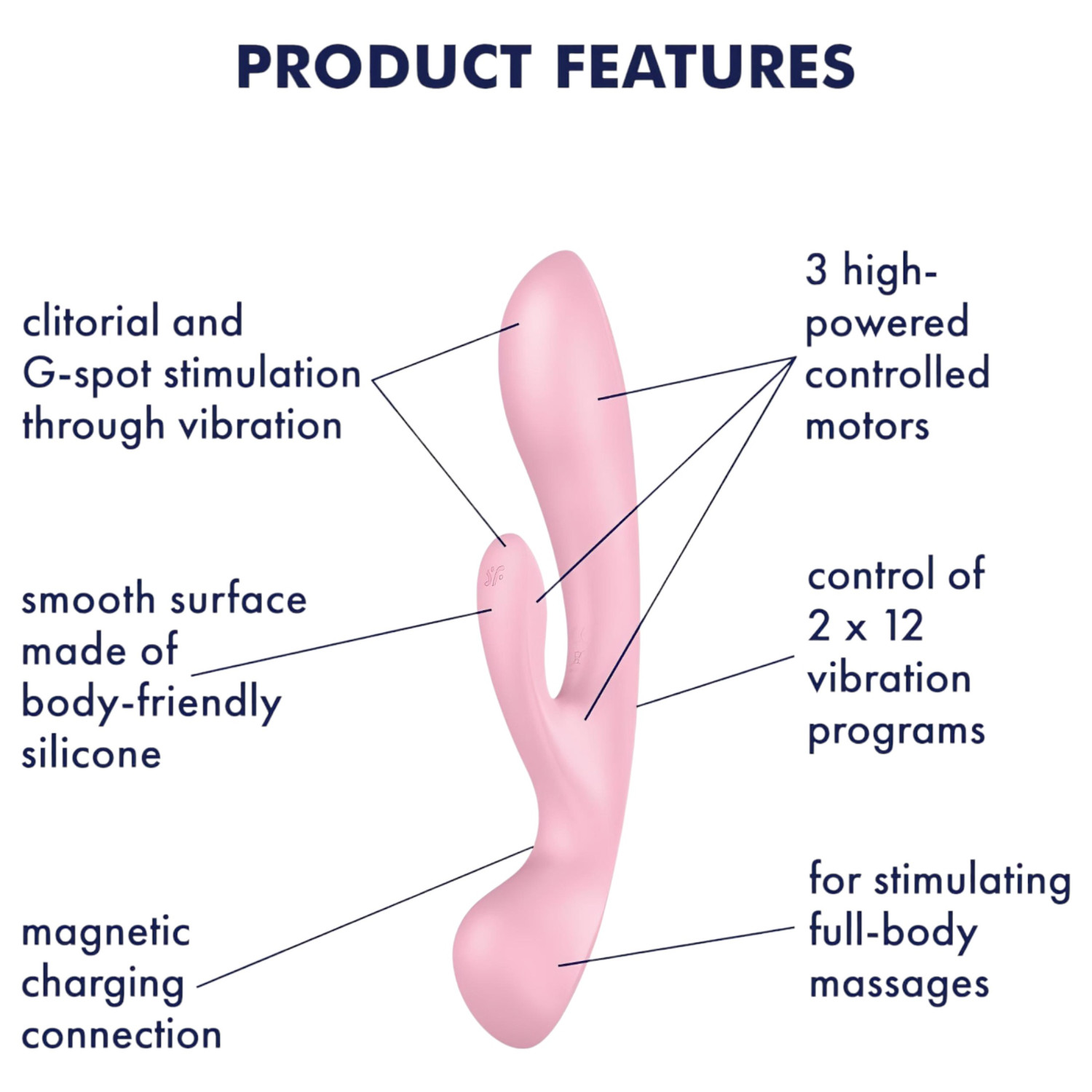 Satisfyer Triple Oh - επαναφορτίζομενος δονητής με βραχίονα κλειτορίδας (ροζ)