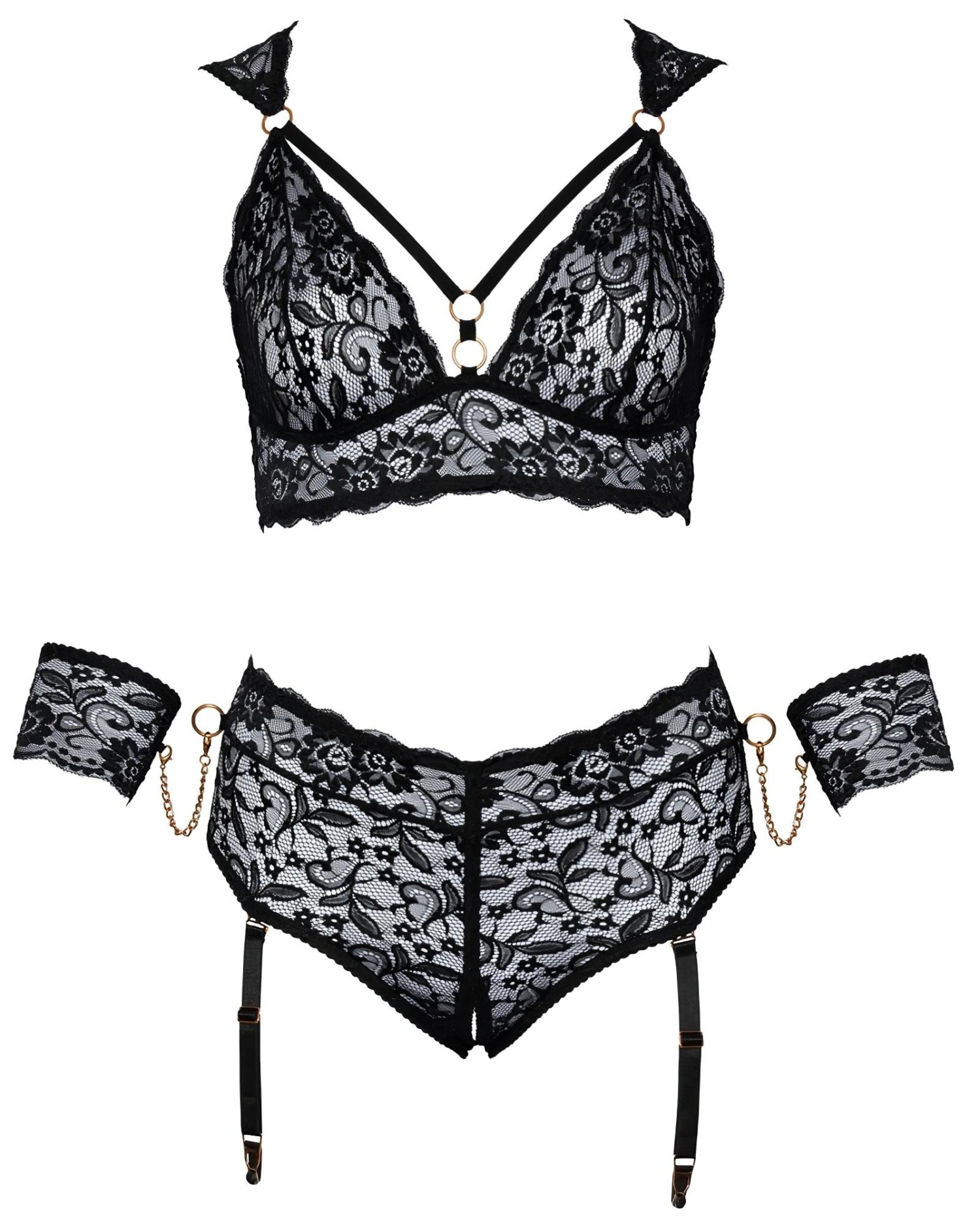 Cottelli Bondage Plus Size - δαντελένιο σετ σουτιέν (μαύρο)