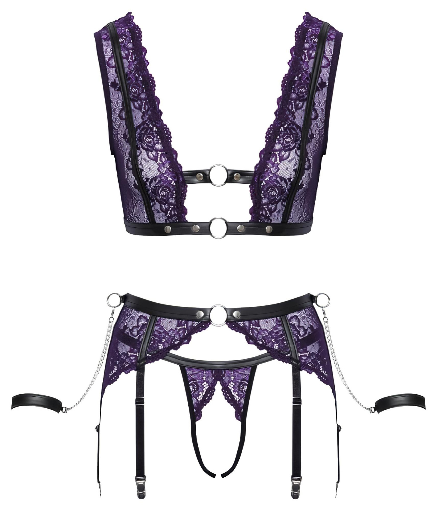 Σετ Εσωρούχων & Χειροπέδες Cottelli Bondage (μαύρο-μοβ)