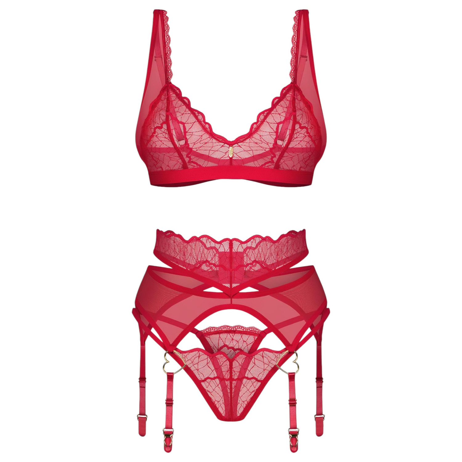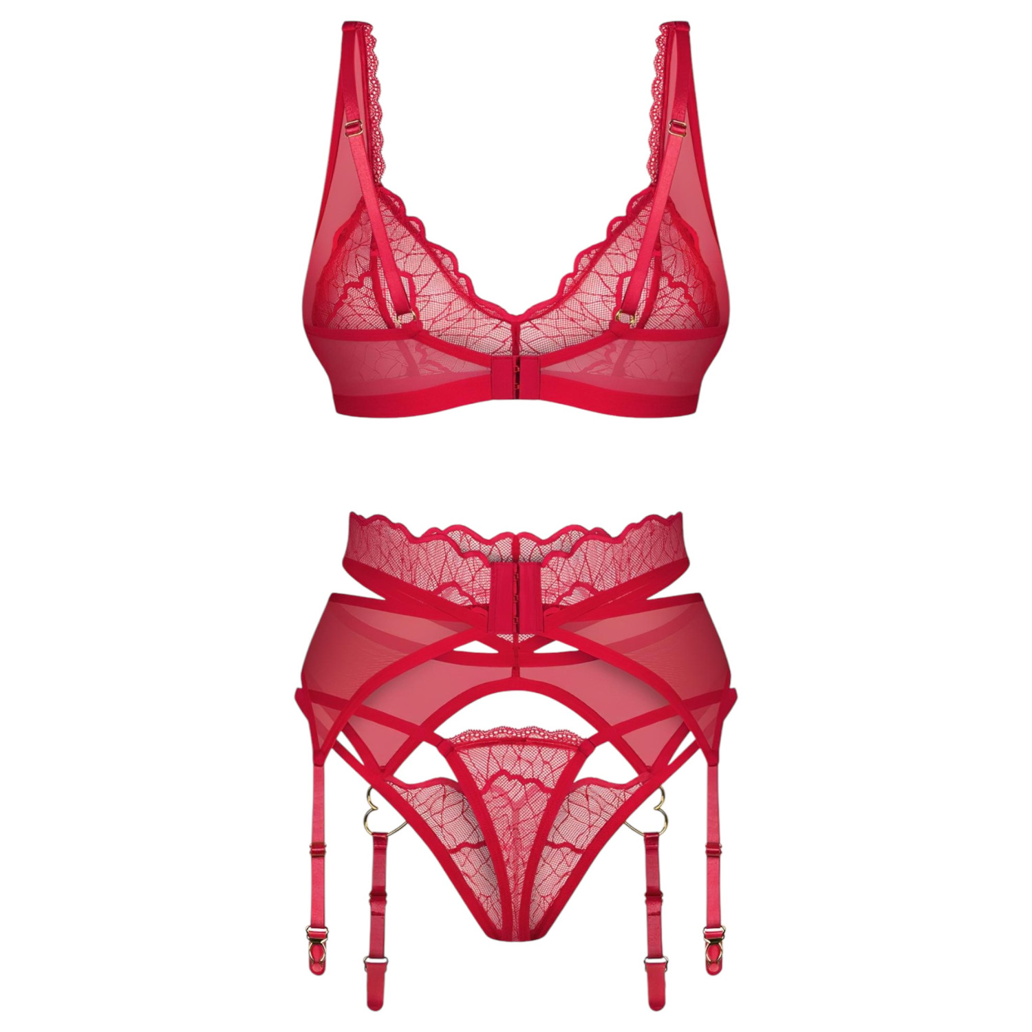 Obsessive Cupid Desir - σετ δαντελωτών εσωρούχων (κόκκινο) - L/XL