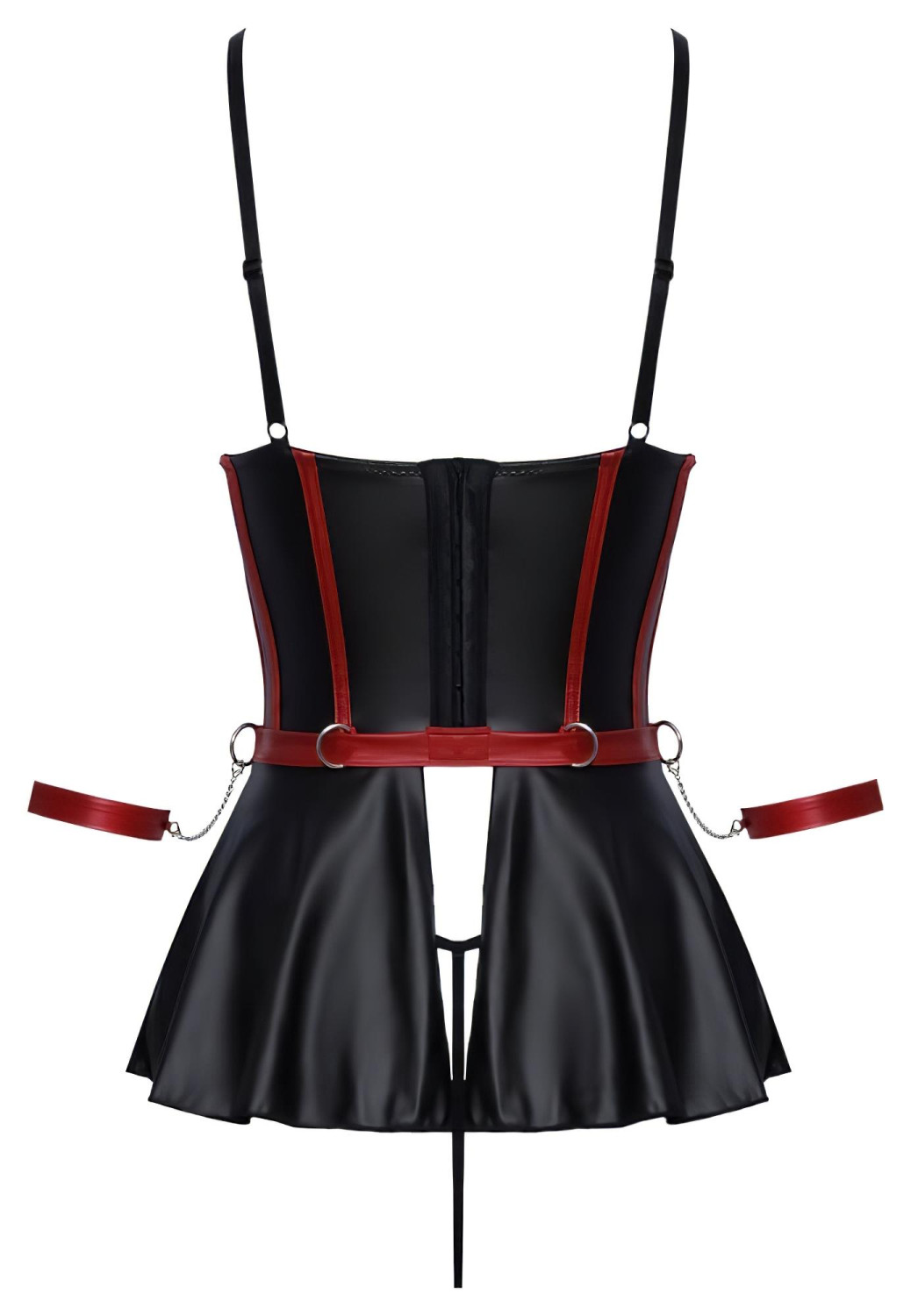 Ιδανικό για σέξι παιχνίδια με δέσιμο - αυτό το μπουστάκι με τελείωμα σε φούστα, σε μαύρο ματ και πειραχτικό κόκκινο συνδυασμό!