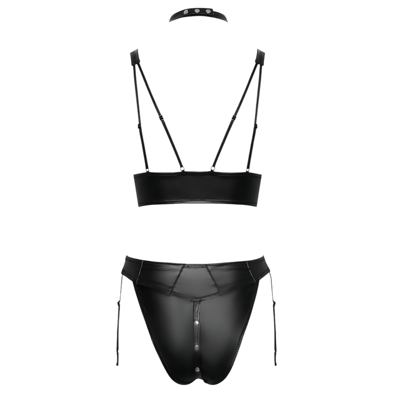Διατίθεται σε ματ μαύρο χρώμα, αυτό το δαντελένιο σετ δύο τεμαχίων σε μεταμορφώνει αμέσως σε μια απολαυστικά δυναμική παρουσία!