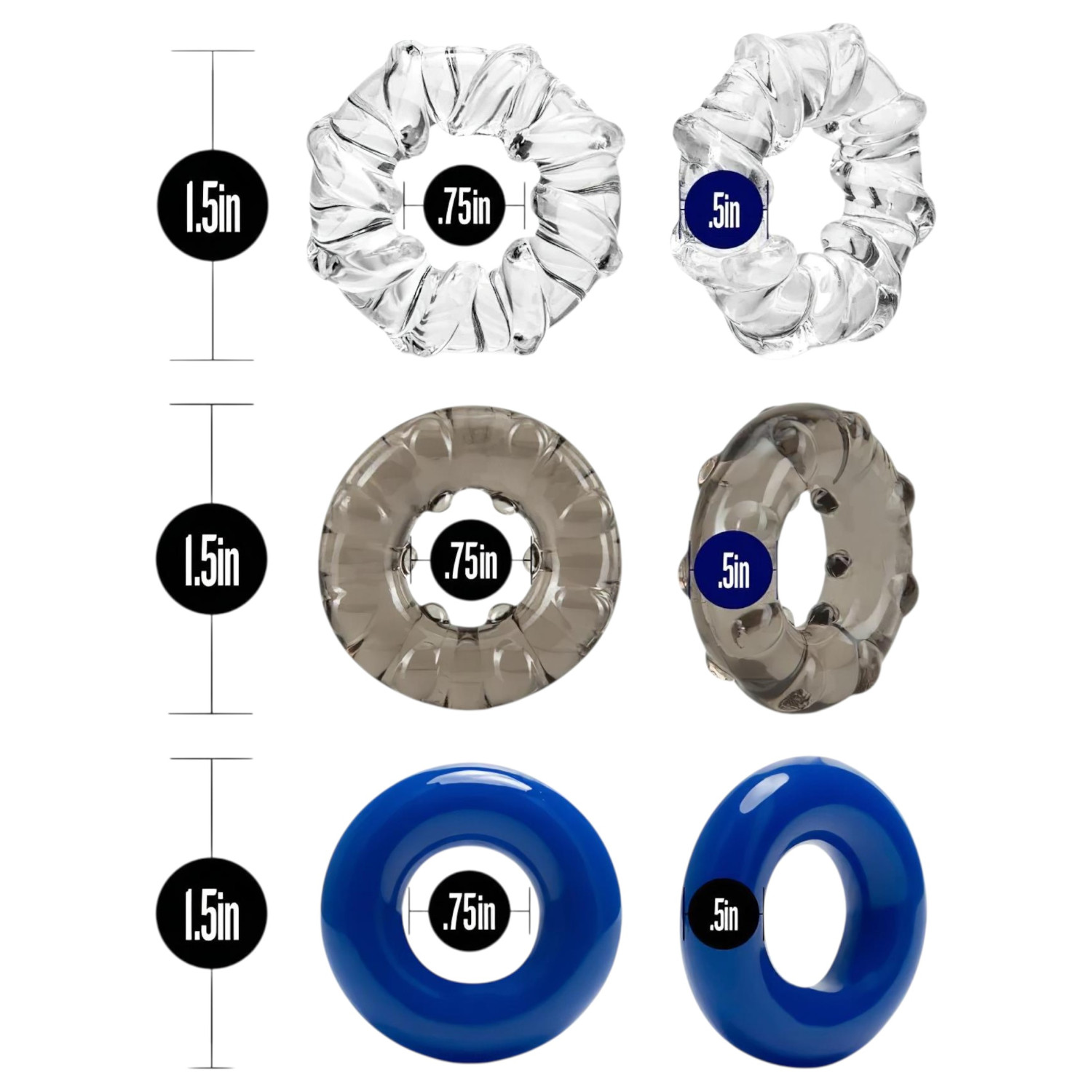 Τρεις δακτύλιοι πέους Stay Hard με διαφορετικές υφές, οι οποίοι ενισχύουν την απόλαυση και βοηθούν στην επιμήκυνση των συνευρέσεων!