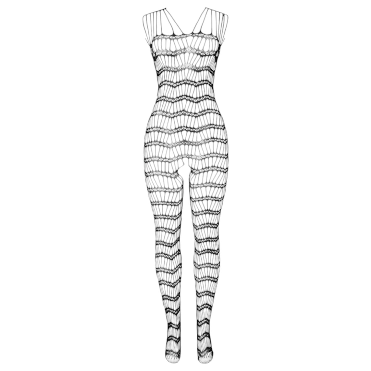 • 1 μαύρο διχτυωτό bodystocking με ανοιχτό καβάλο και τιράντες