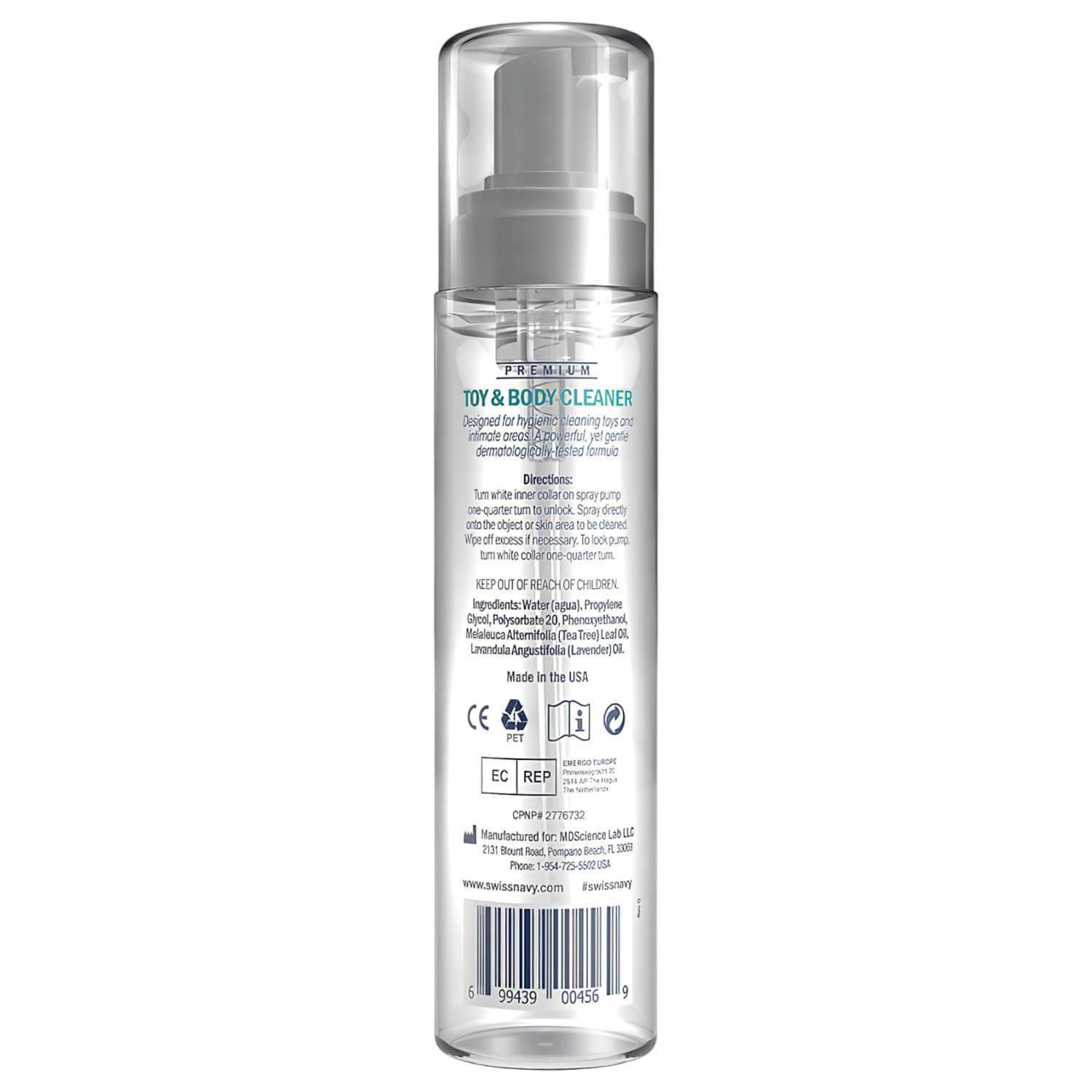 Το Swiss Navy Toy & Body Cleaner είναι ένας εξαιρετικά απαλός, αλλά αποτελεσματικός καθαριστικός αφρός, που με ασφάλεια αφαιρεί τα σωματικά υγρά και τα υπολείμματα λιπαντικών - ακόμα και αυτών που βασίζονται στη σιλικόνη - από το δέρμα και τα σεξουαλικά παιχνίδια.