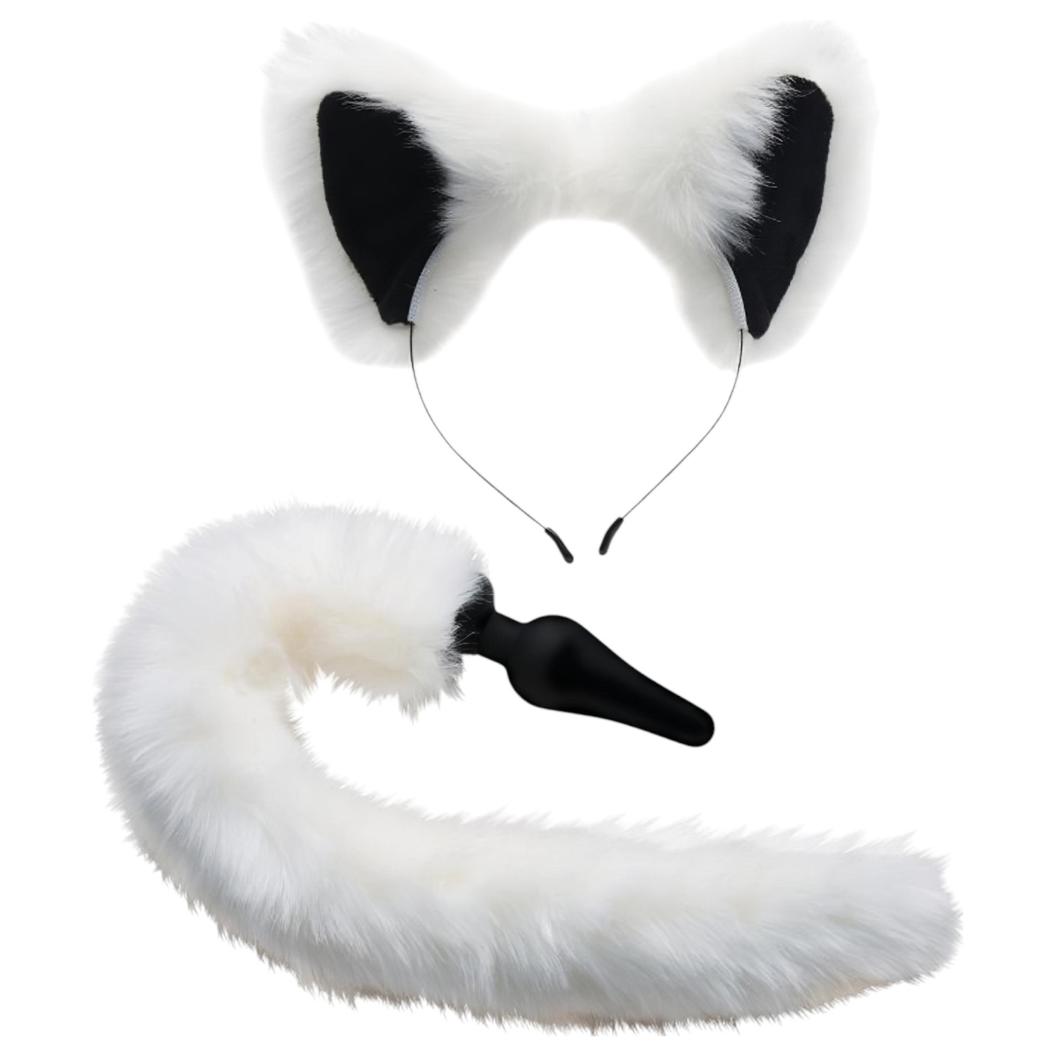 TAILZ - αλεπούς πρωκτική τάπα και κεφαλόδεσμος (μαύρο-άσπρο)