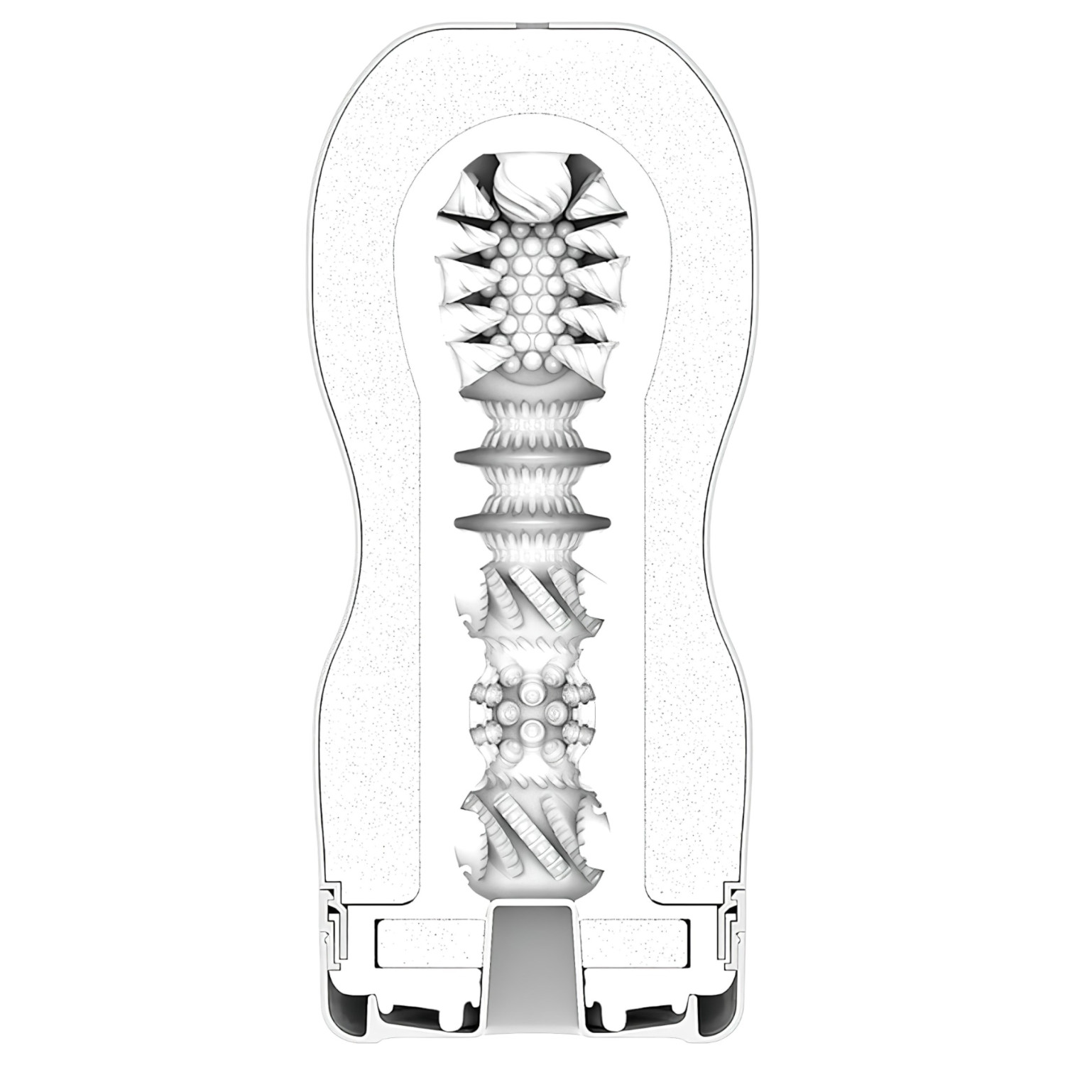 • Εκτός από τη δομημένη εσωτερική επιφάνεια, έχει και ελαστικό, μαλακό εξωτερικό περίβλημα - έτσι ελέγχεις εσύ το πόσο σφιχτό θέλεις να είναι: αν θες να είναι πιο στενό σε όλο το μήκος, πίεσέ το με όλη την παλάμη σου, αν μόνο σε ένα σημείο, με τον δείκτη και τον αντίχειρα.