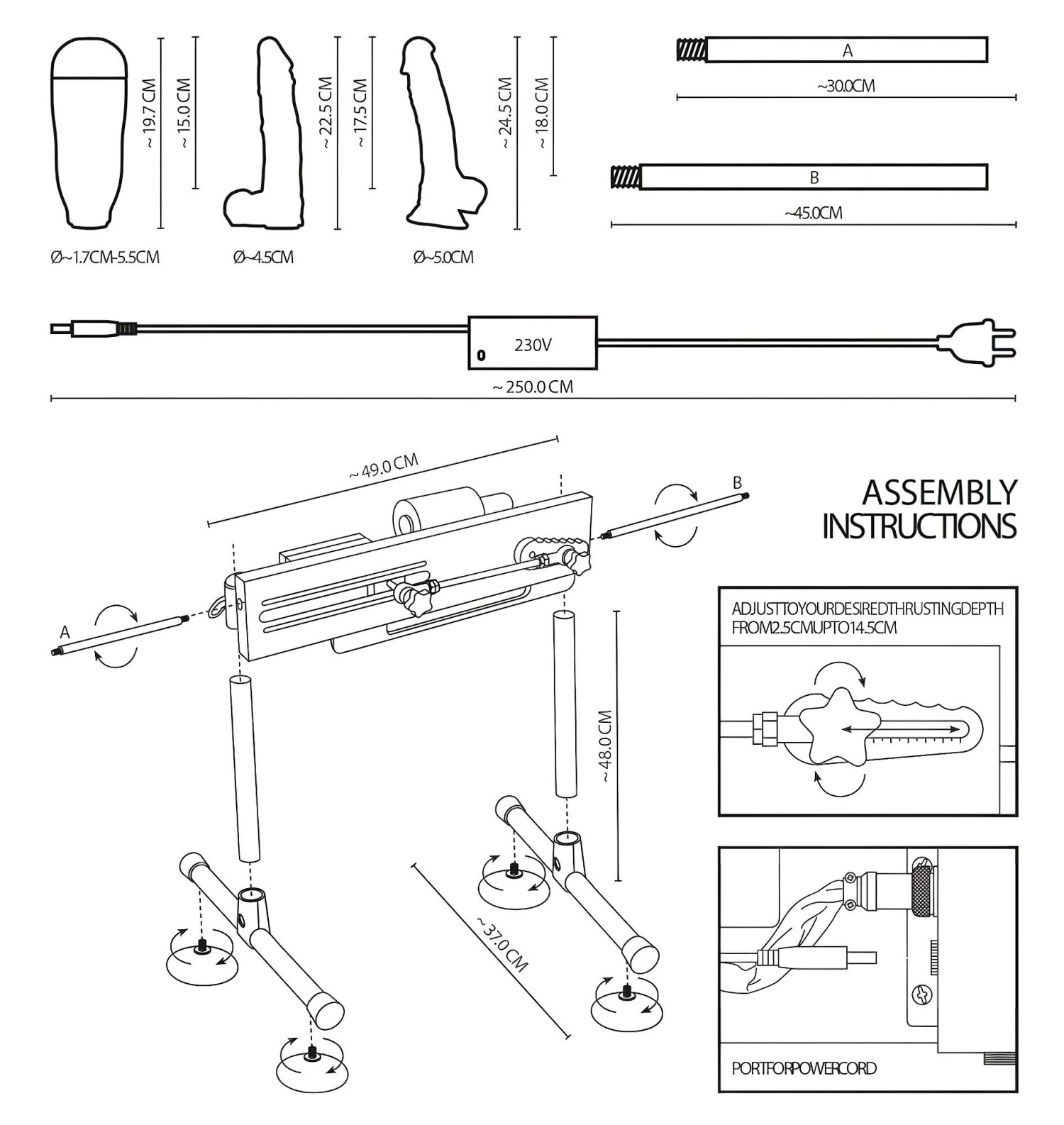 Συναρμολόγησε τα πόδια όπως δείχνει ο οδηγός, βίδωσε έναν από τους δονητές και το onanιστήρι στους ειδικούς βραχίονες.