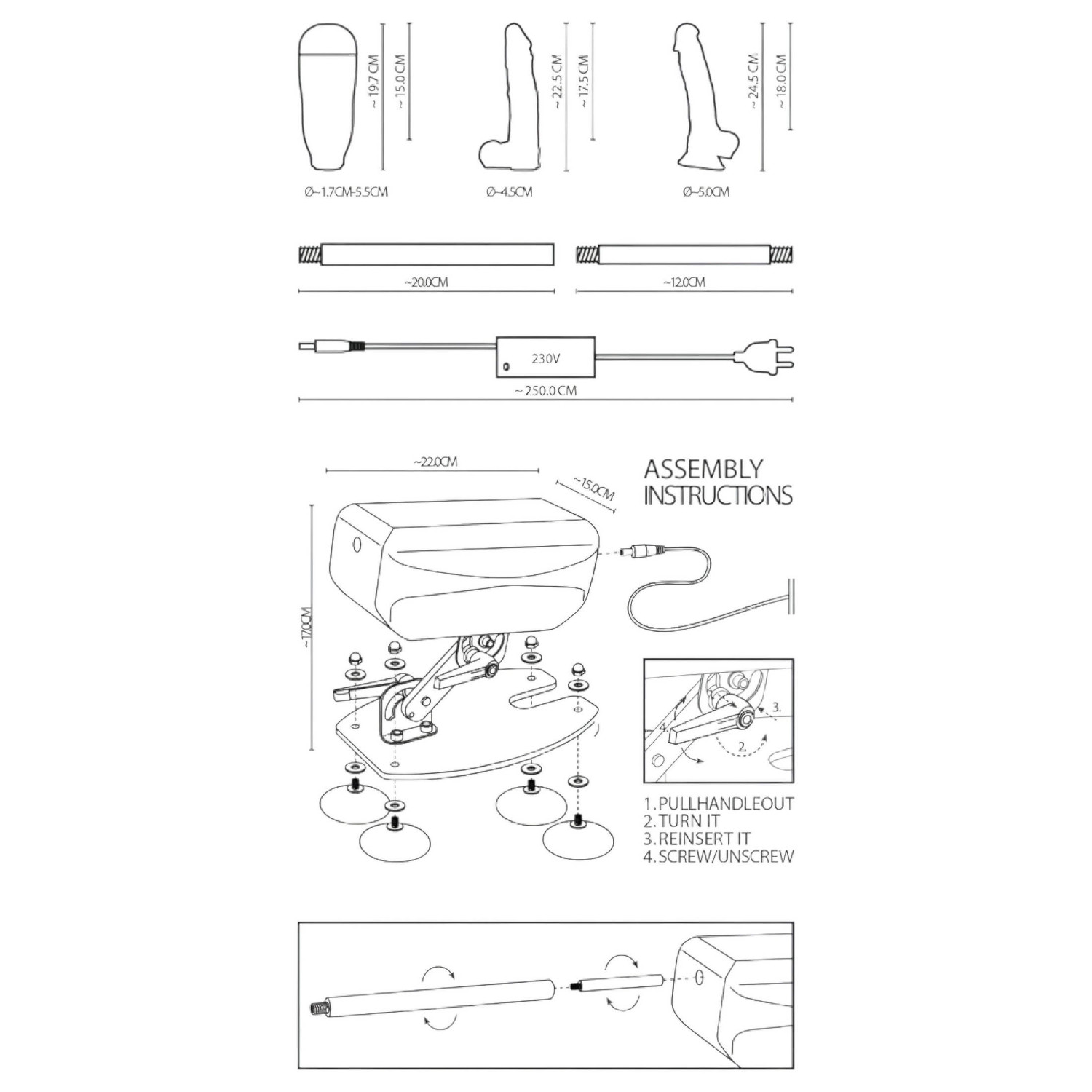 • Σύμφωνα με τις εικόνες στον οδηγό, συναρμολόγησε τη συσκευή και βίδωσε το dildo ή τον μαστιουμπάτορα πάνω στη ράβδο.