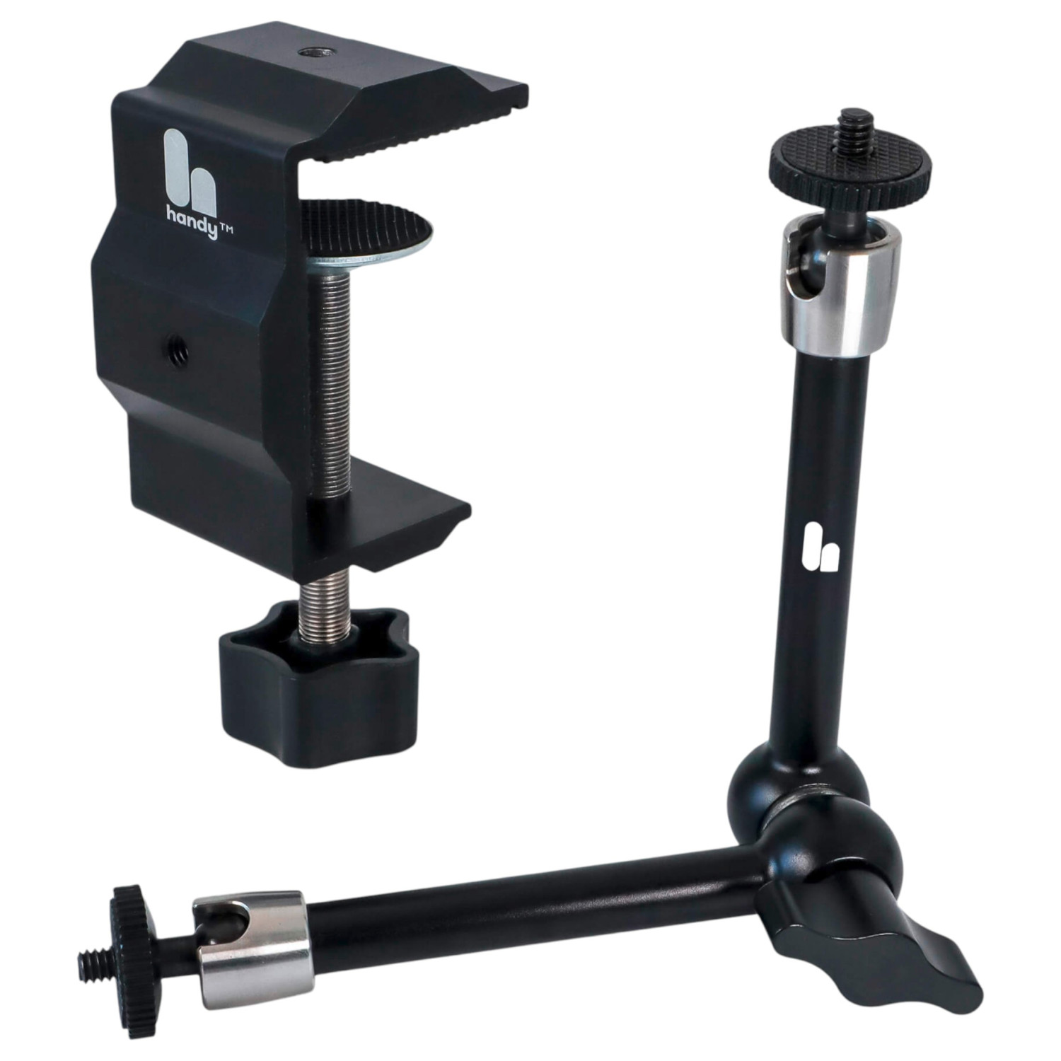 Με το Handsfree Desk Mount μπορείς να απολαύσεις τελείως handsfree ό,τι προσφέρει το The Handy. Το ρυθμιζόμενο μπράτσο και η σταθερή βάση σου επιτρέπουν να προσαρμόσεις την εμπειρία σου, ενώ τα χέρια σου παραμένουν ελεύθερα για ό,τι άλλο θέλεις ή απλώς για να χαλαρώσεις.
